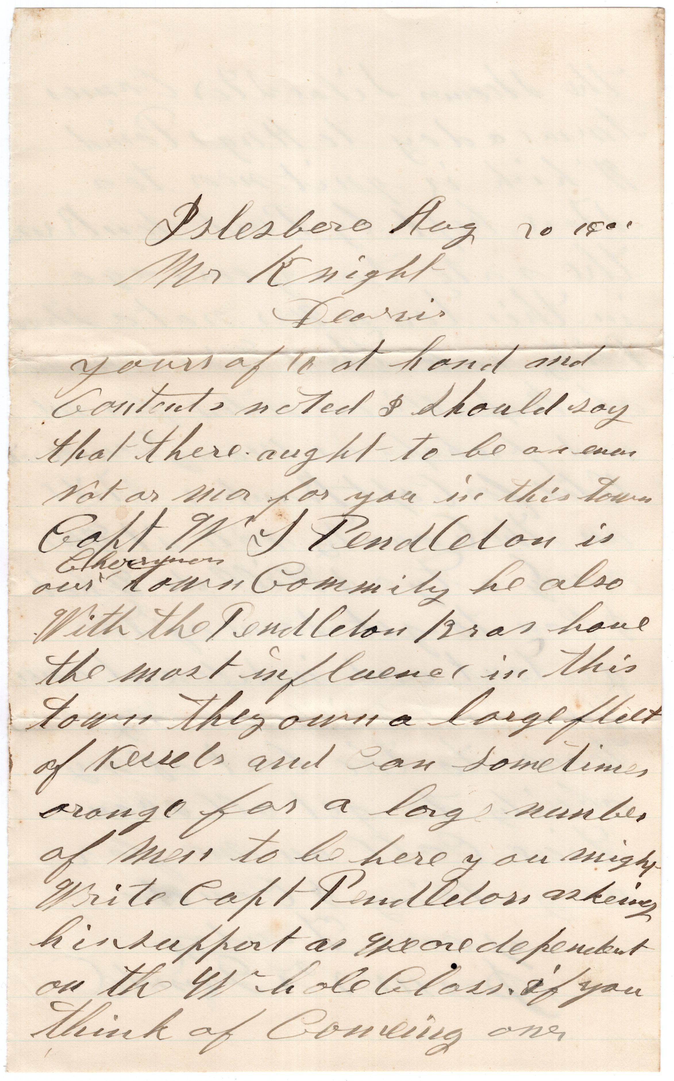 Knight Collection - 1901 Letter; Dated August 20; Written by James Grinnell on Islesboro to Arno KnightRelationships