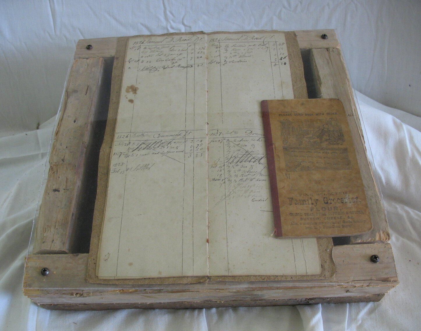 account book believed to be from a Linc. Bch gen. store - circa 1826. Book is encased i wooden box with plexiglass viewing shield. Many local names in account section.Update Date
