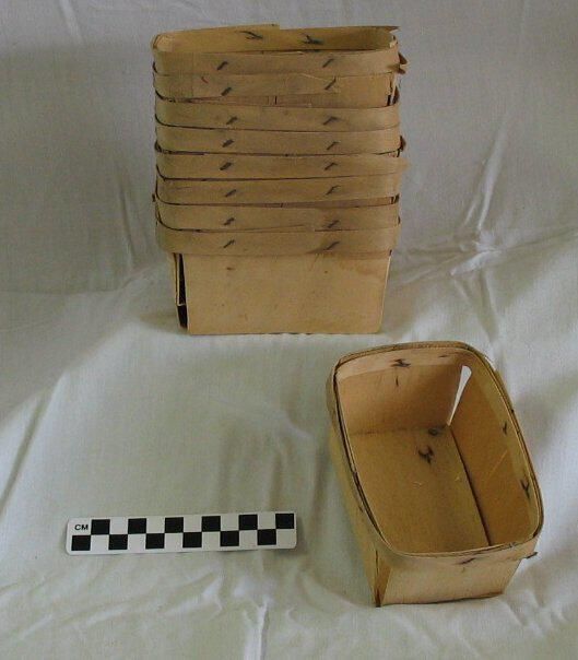 one dozen half pint wooden berry baskets, probably for raspberries from the Claude Heald farmRelationships