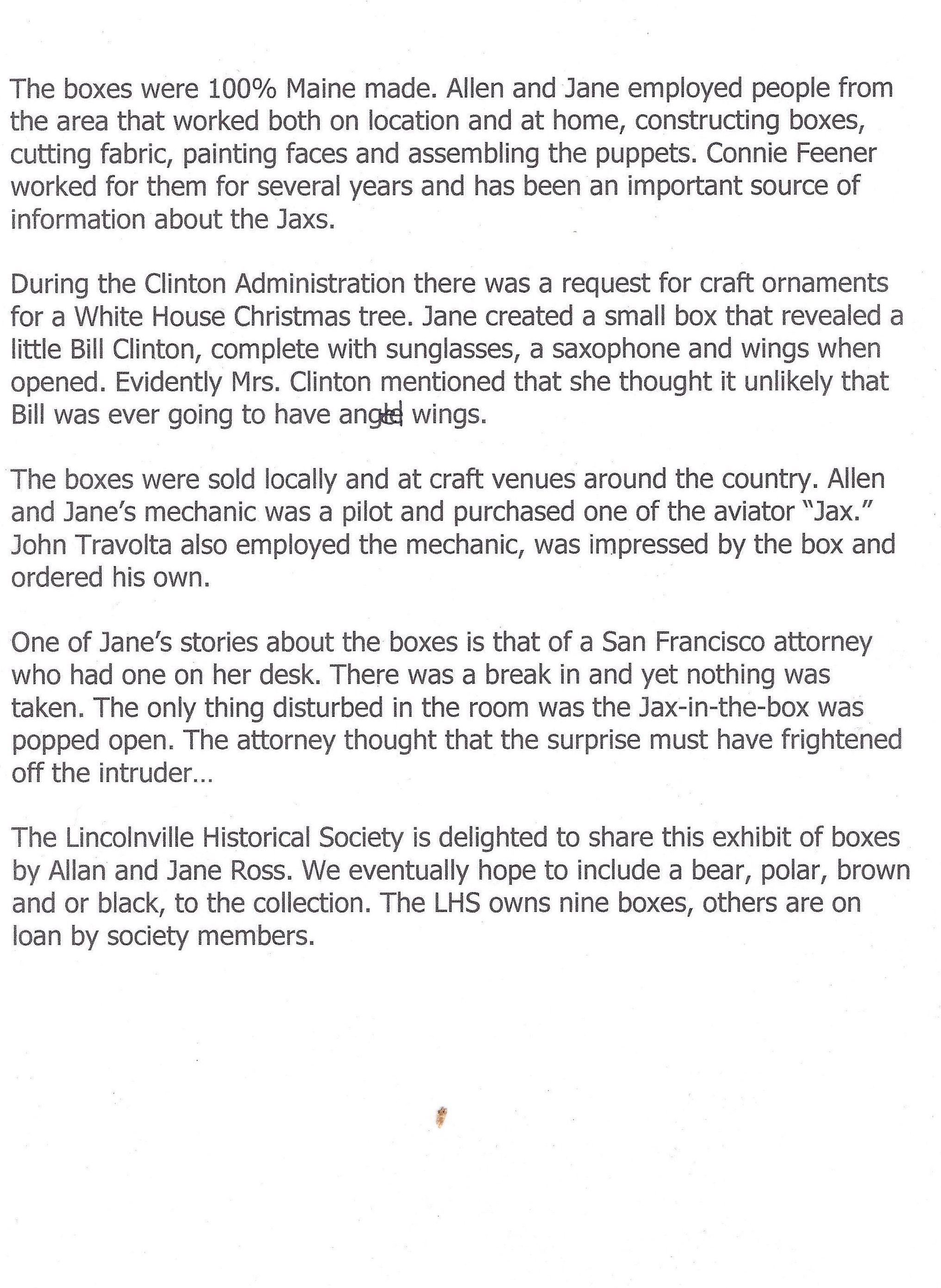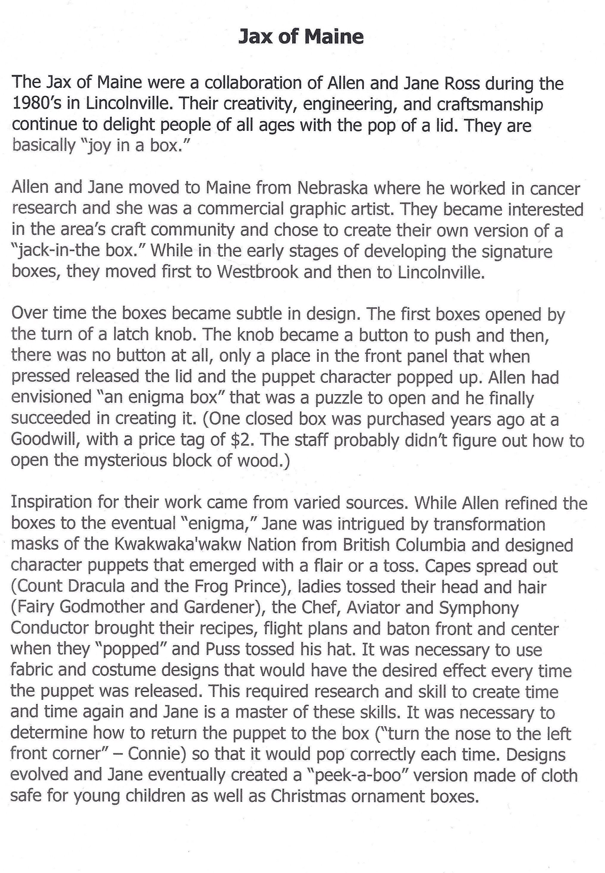 History of Jax of MaineEntry/Object ID
