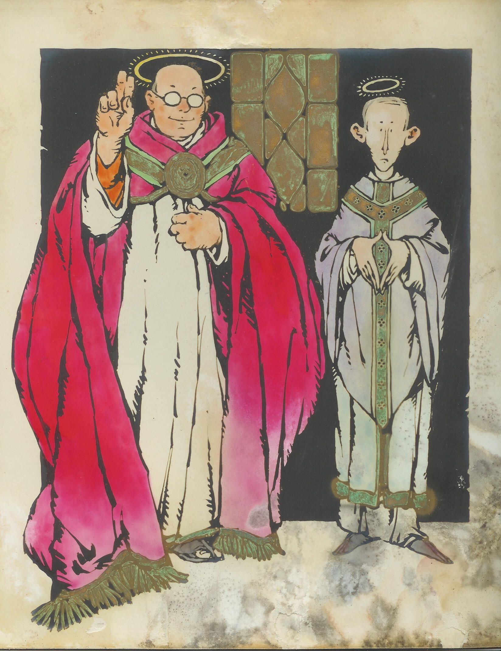 watercolor of two priests original art for greeting card 9 x 10 1/2