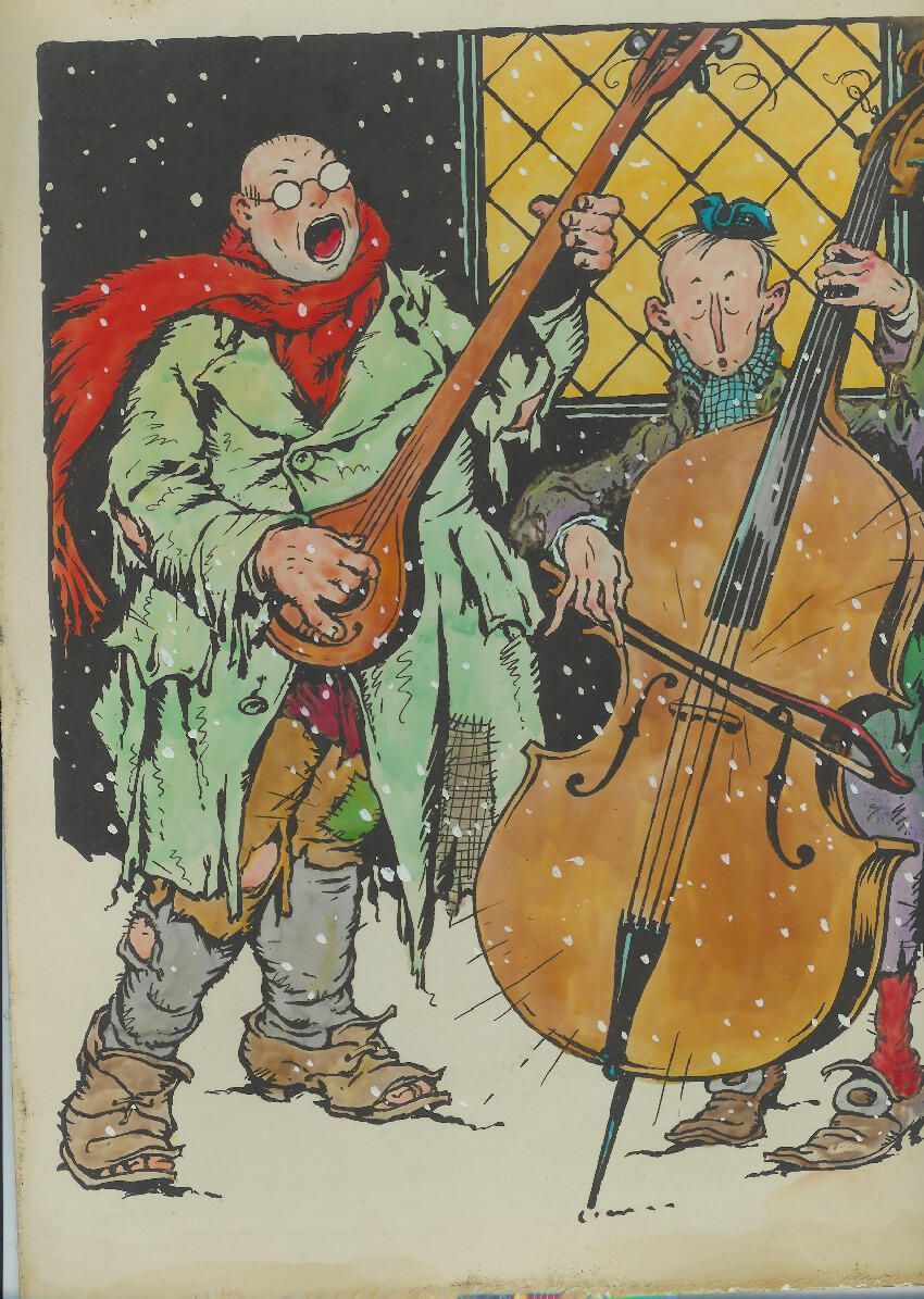 original artwork for a Christmas card 9 1/2 x 11 3/4 two raggedy musicians