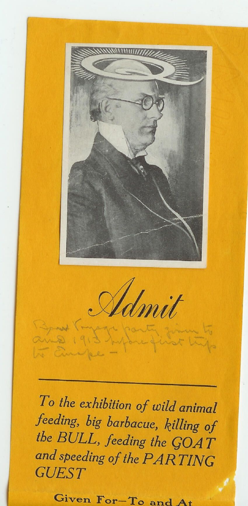 invitation to a bon voyage party for A.M. Davis on the occasion of his first trip to Europe in 1913