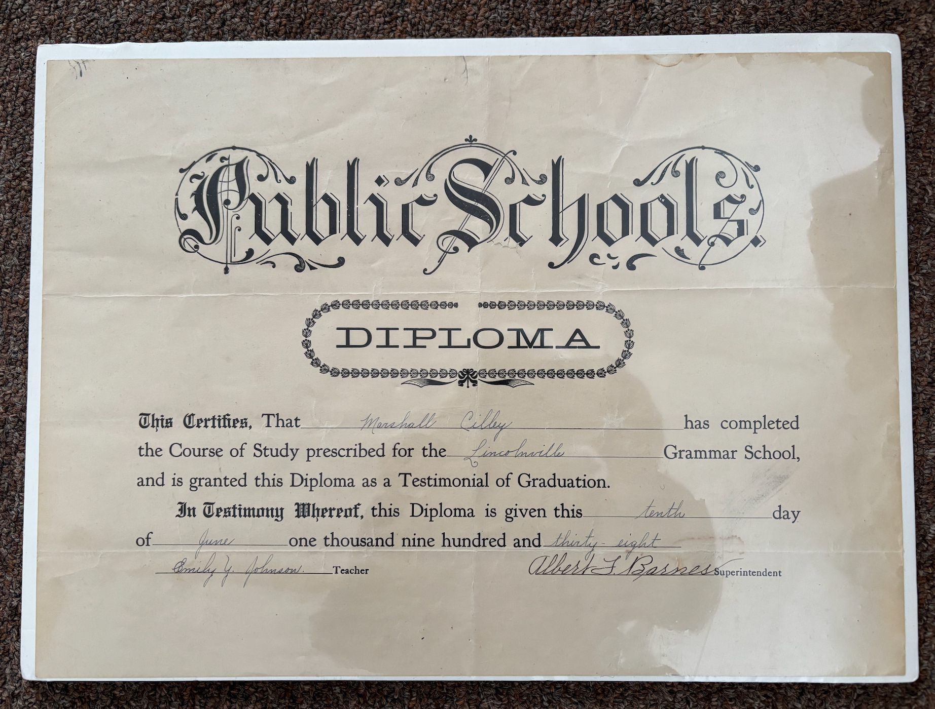Diploma from the Lincolnville Grammar School to Marshall Cilley 1938Relationships