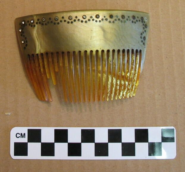 tortoise shell comb, painted gold top with rhinestones