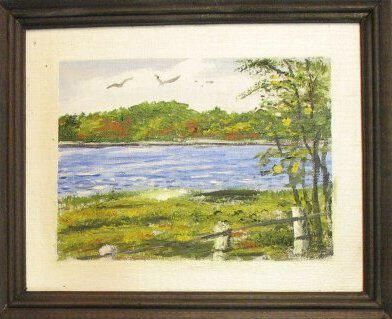 oil painting of pond in summer