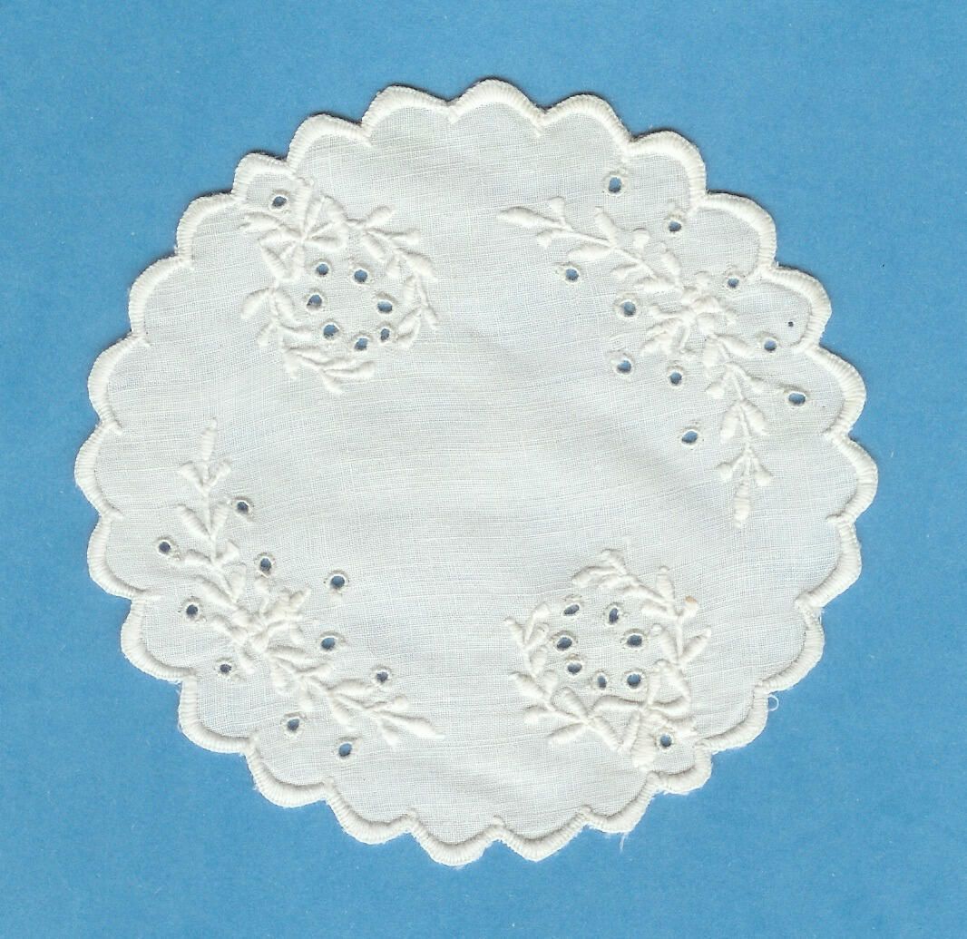 white cotton, cut work embroidery, probably commercial