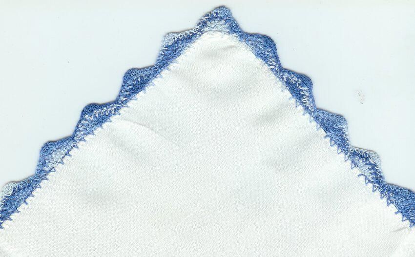 white cotton handkerchief with hand crocheted blue lace edgeRelationships