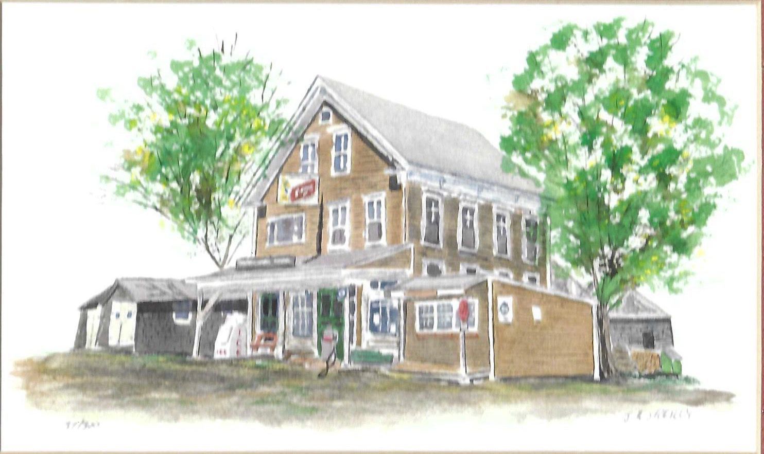 print of a watercolor drawing of the Center General Store