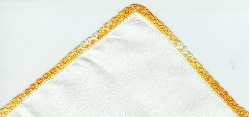 white cotton handkerchief with hand crocheted varigated yellow lace edgeRelationships