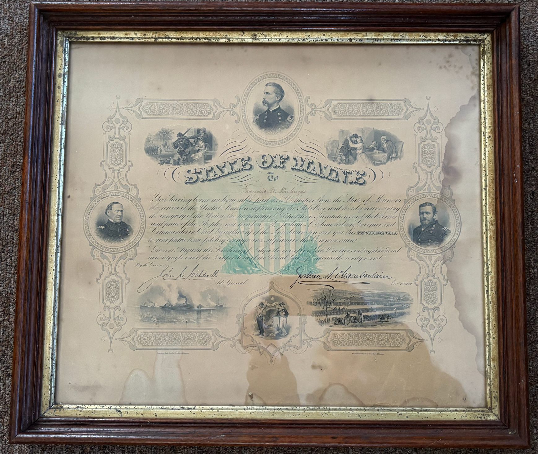 Certificate from State of Maine to Francis W. Richards for his service in the Civil War; signed by Joshua ChamberlainRelationships