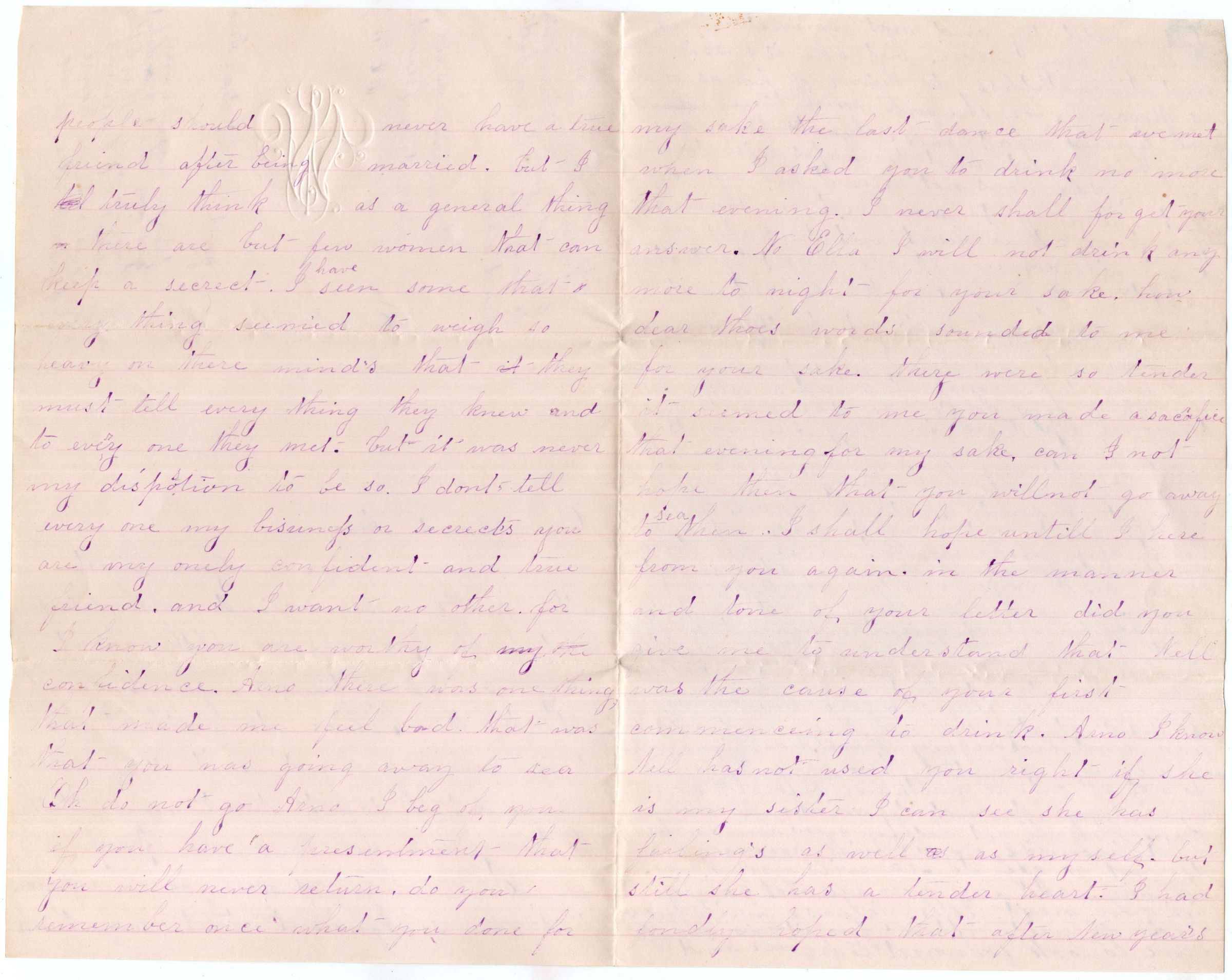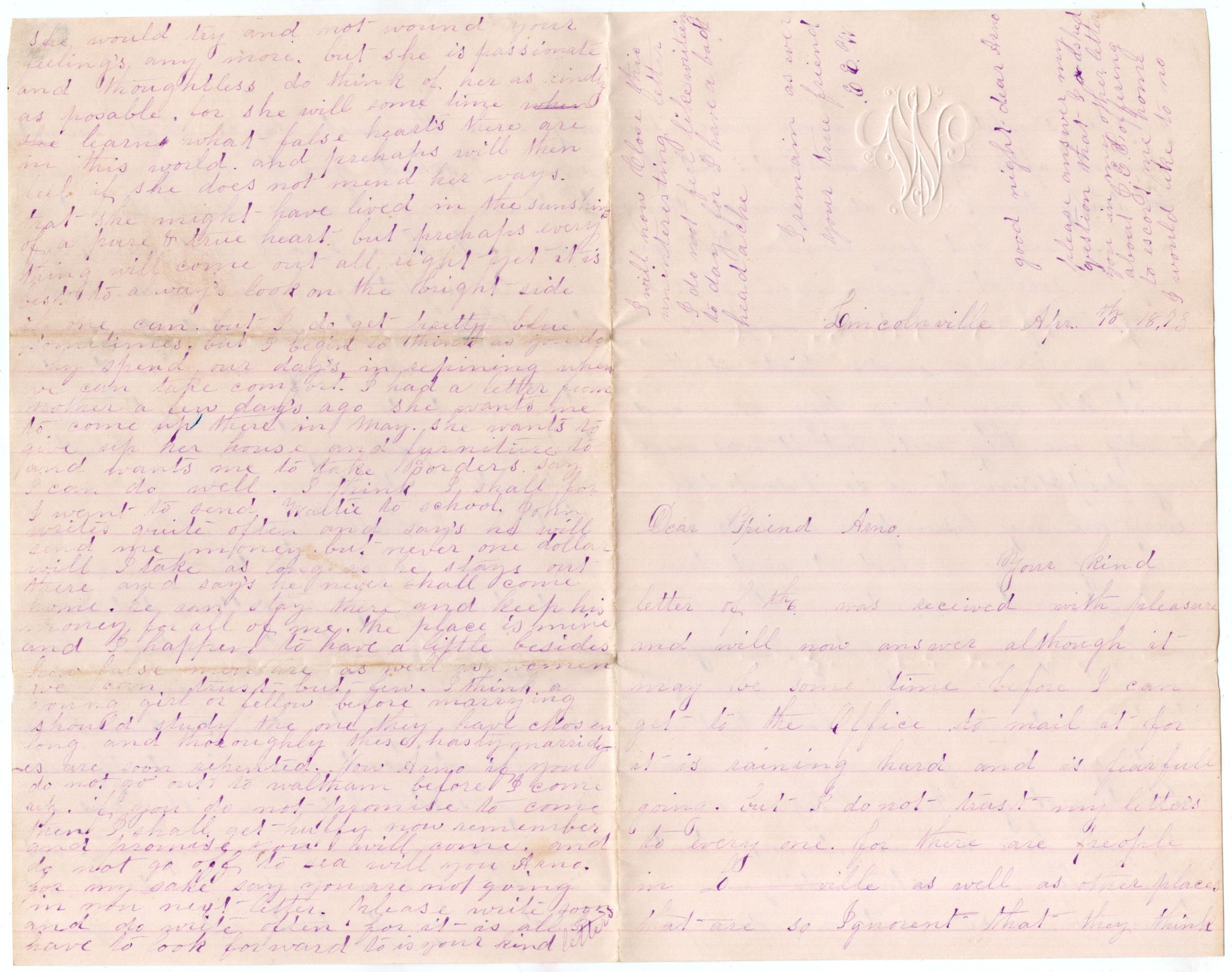 Knight Collection - 1873 Letter; Dated April 10th; Written by Ella Watson to Arno Knight who is working in Norton, MA at a Woolen MillRelationships