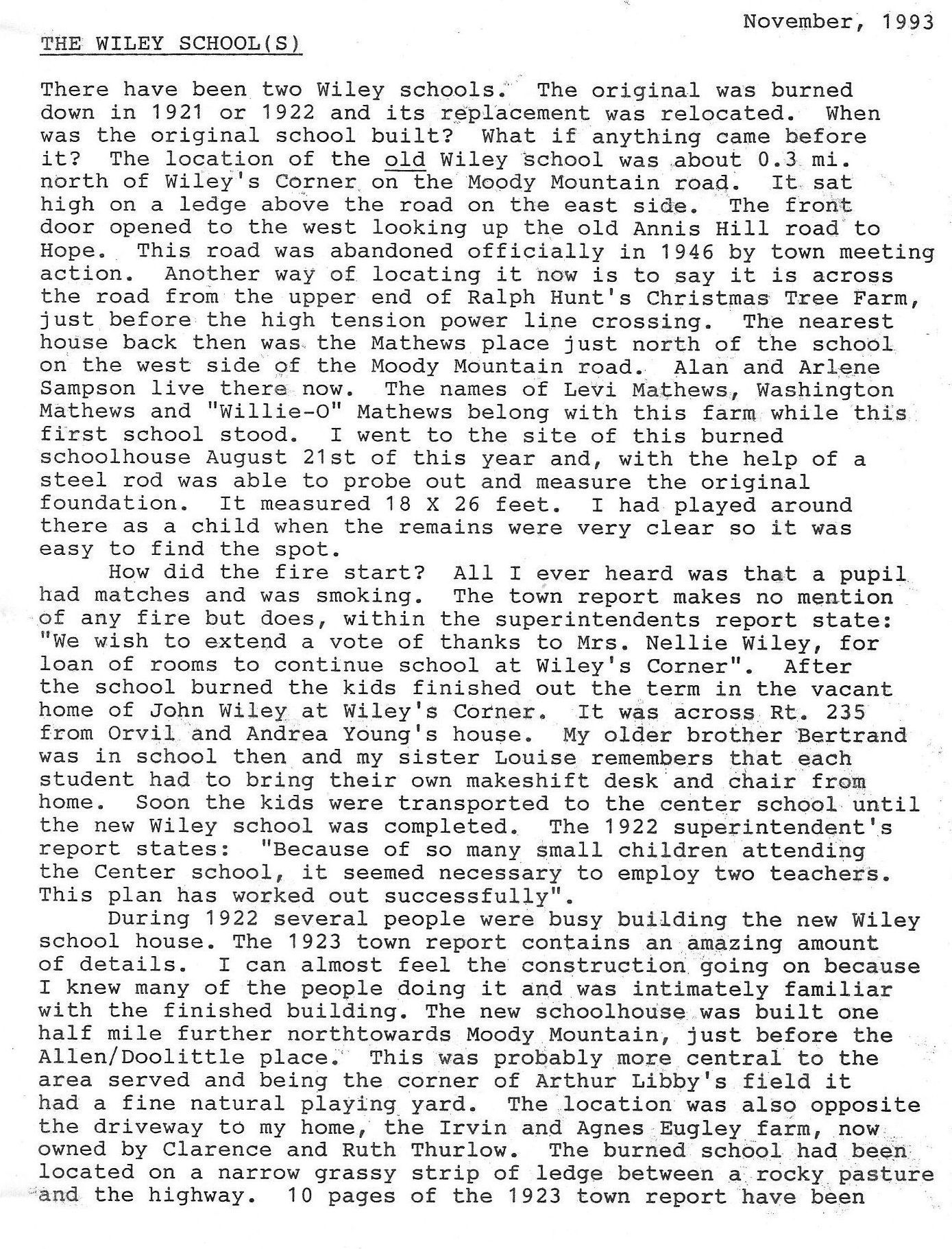 Wiley School was located on Moody Mountain Road; the building still exists