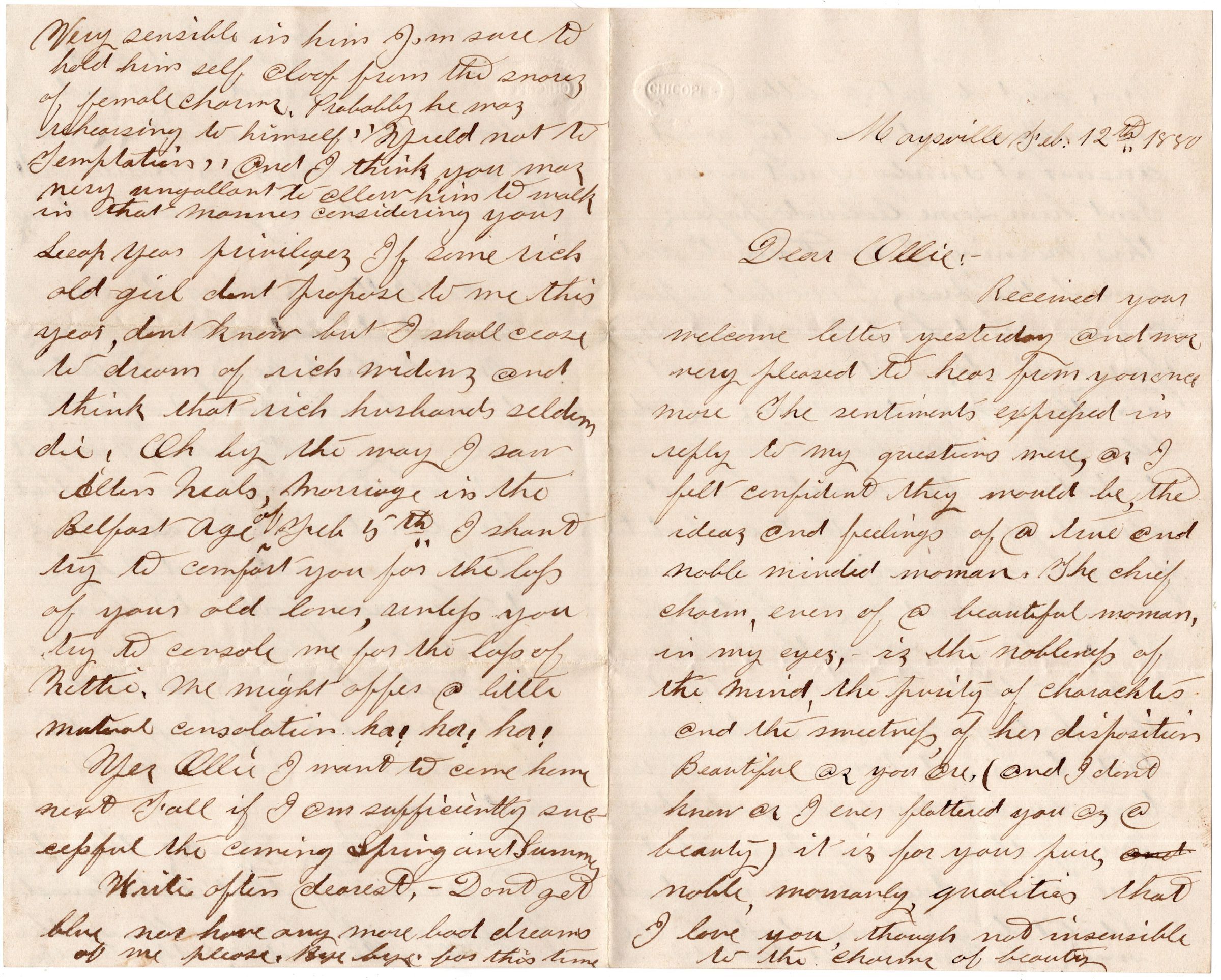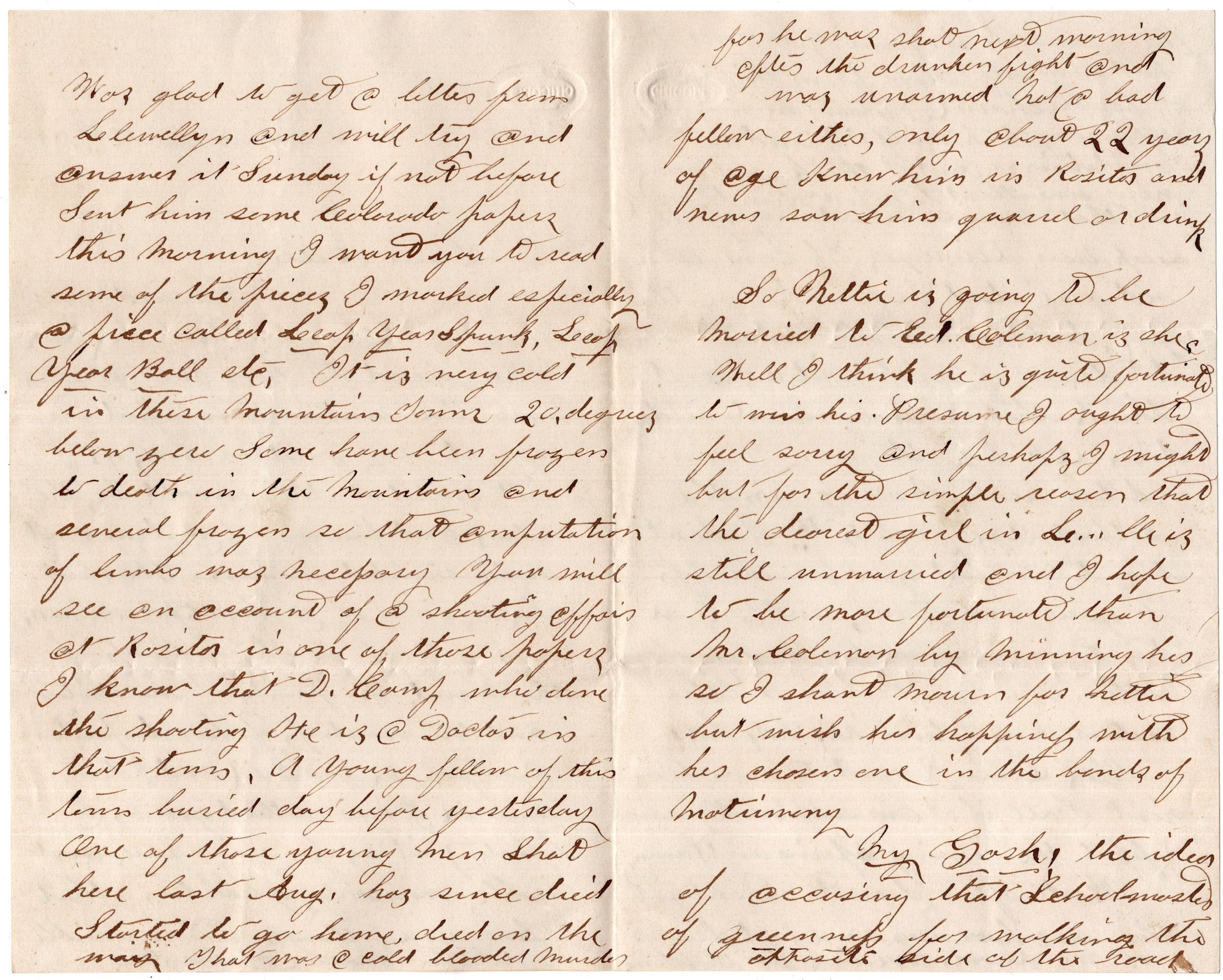 Knight Collection - 1880 Letter; Dated February 12th; Written by Arno Knight to Olive Drinkwater; Arno is working in ColoradoRelationships