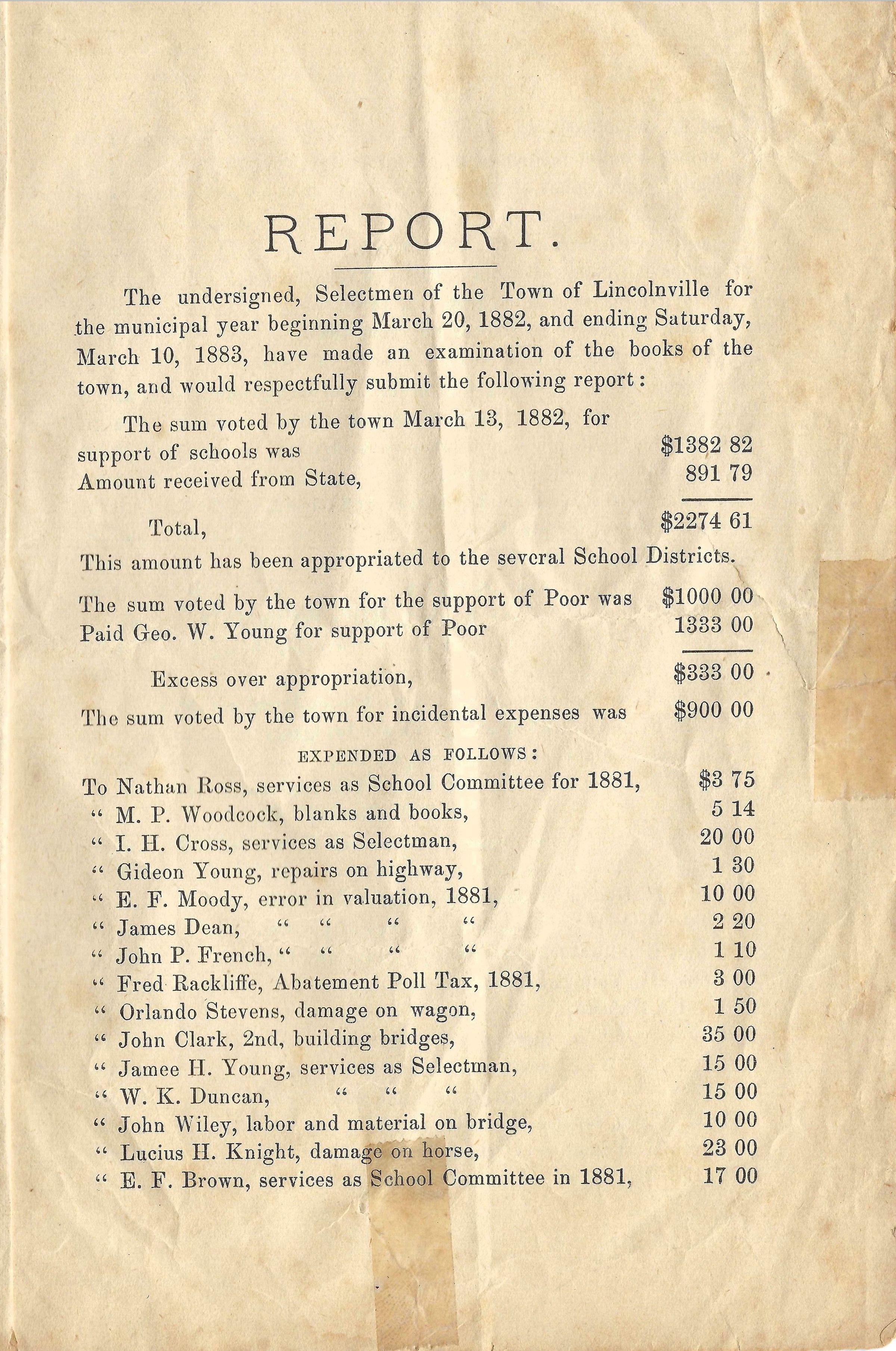 1883 Annual Report of Town of Lincolnville