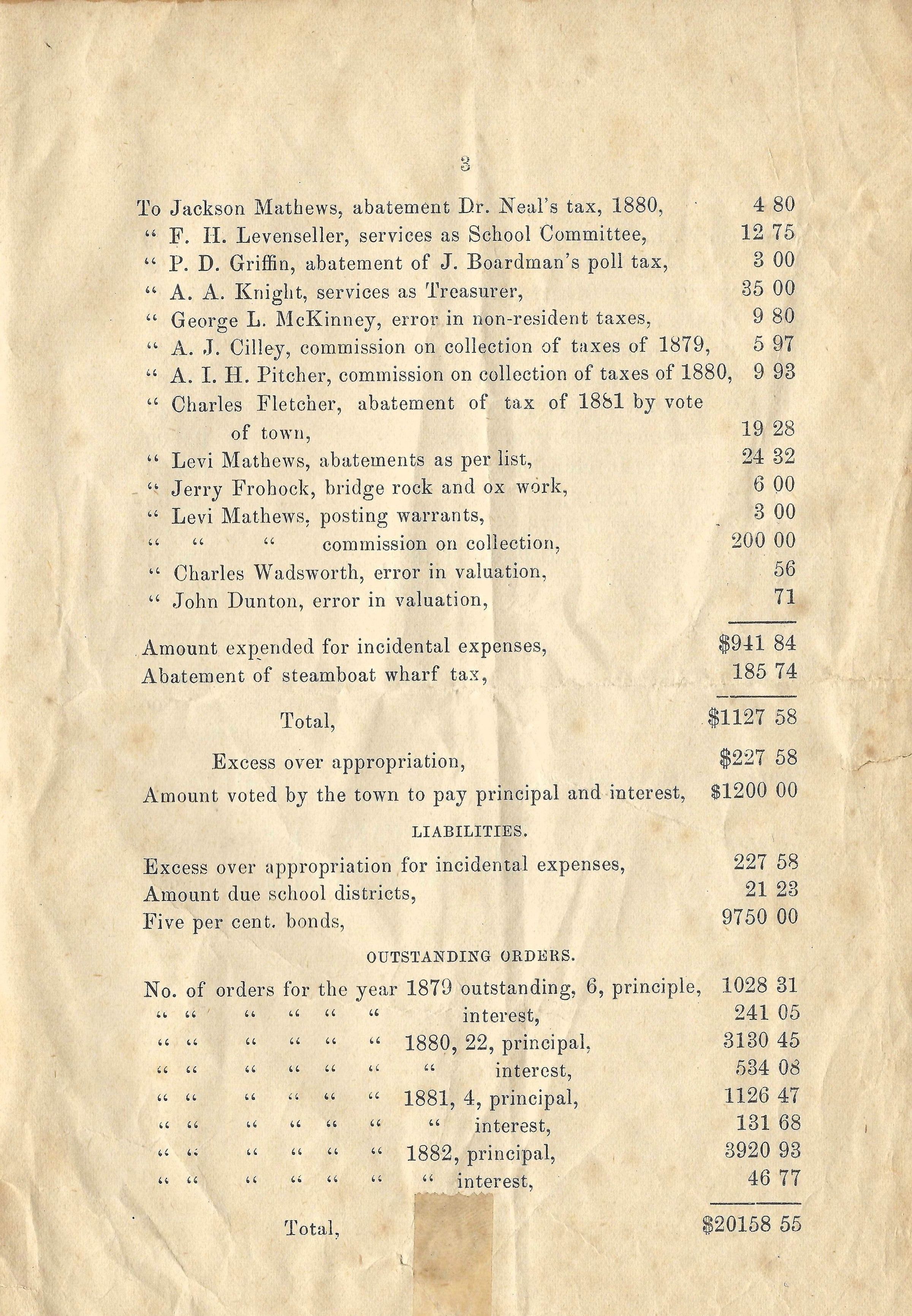 1883 annual report of the town