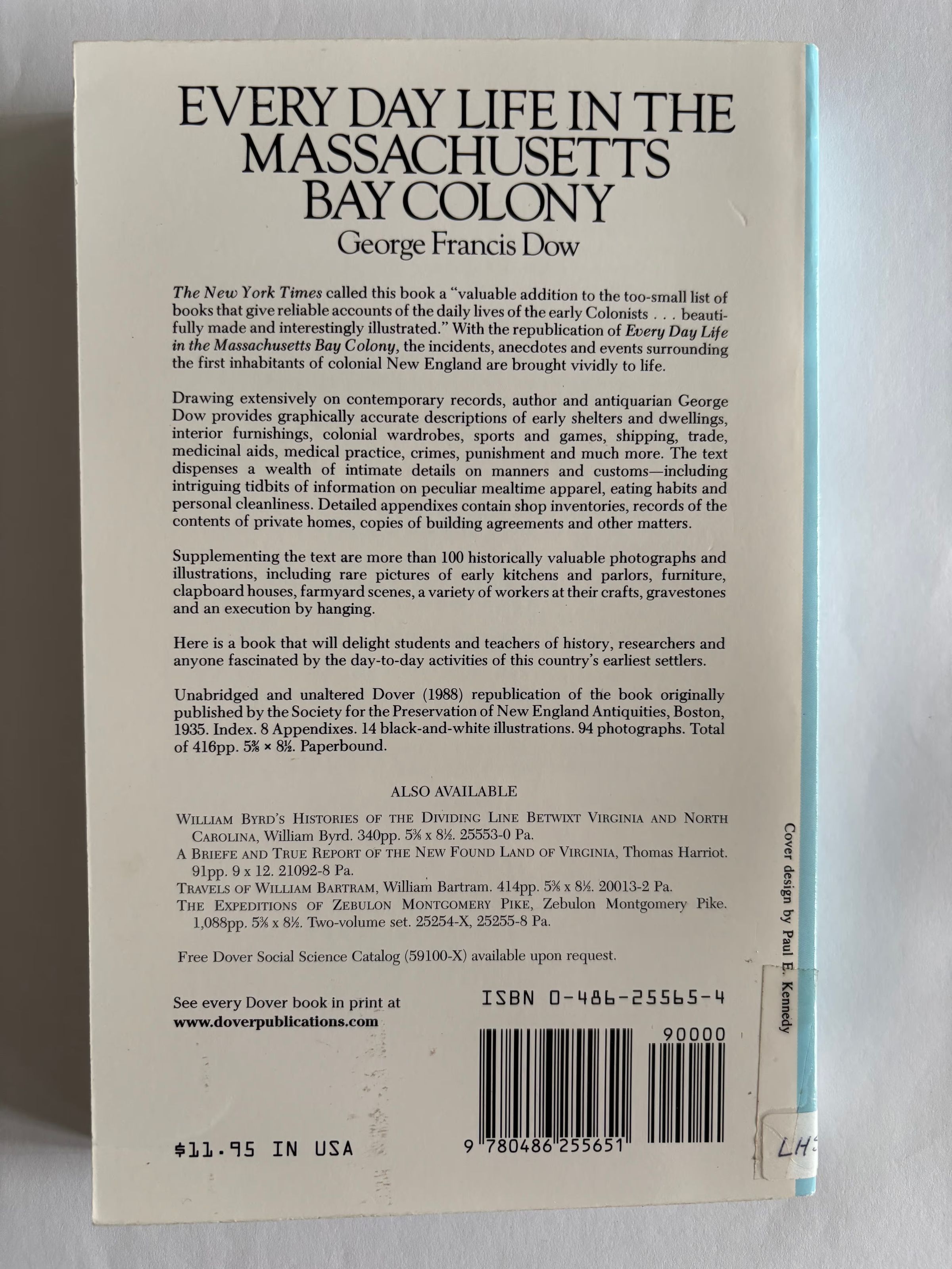 Every Day Life in the Massachusetts Bay Colony by George Francis Dow