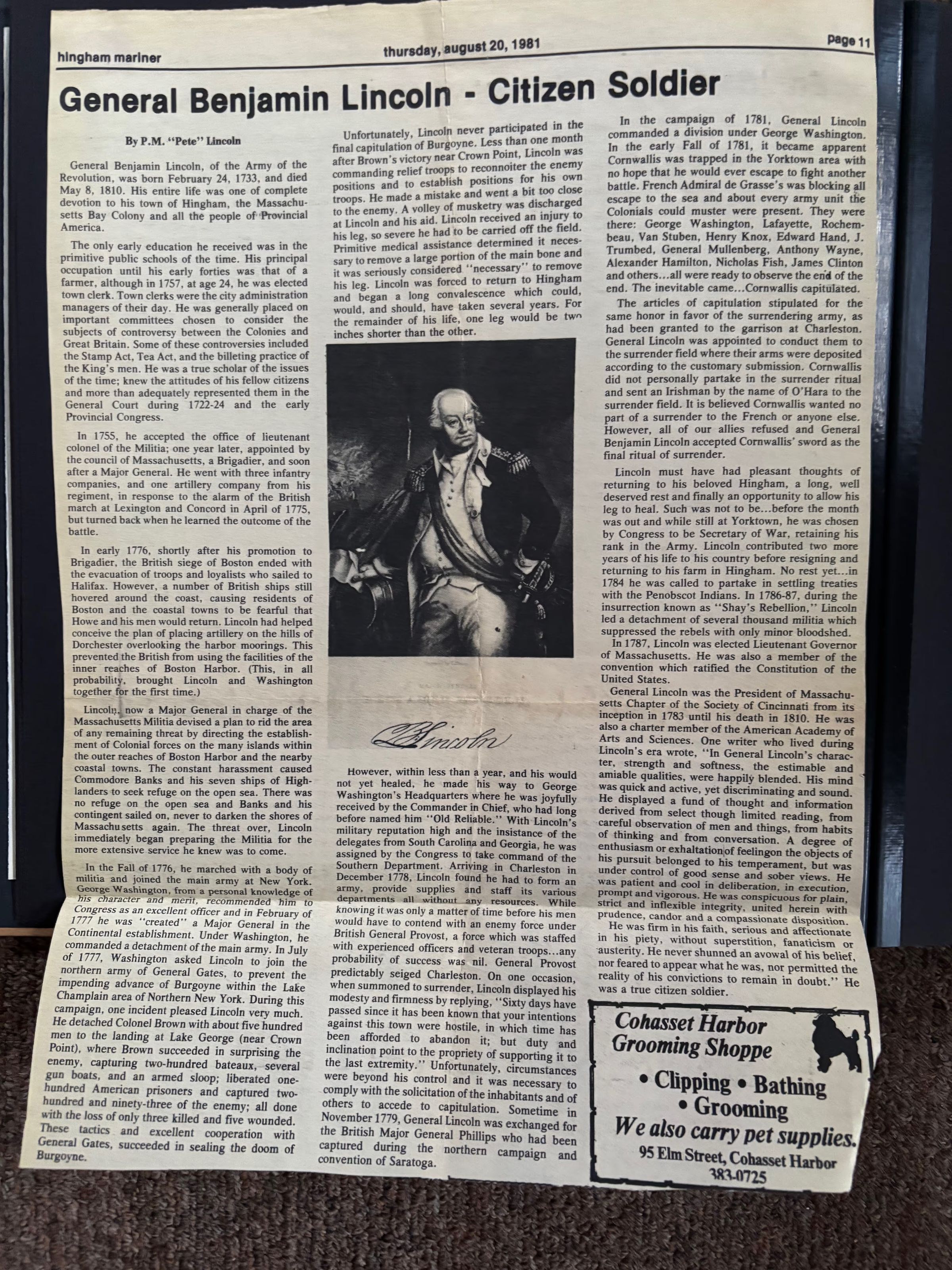 General Benjamin Lincoln - Articles, Biography, Town of Lincolnville naming etcEntry/Object ID