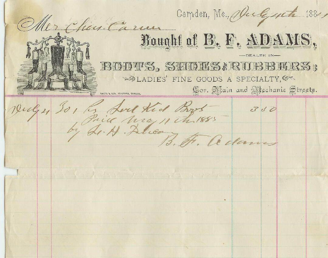 Receipt from B. F. Adams Shoe Store to Charles Carver.