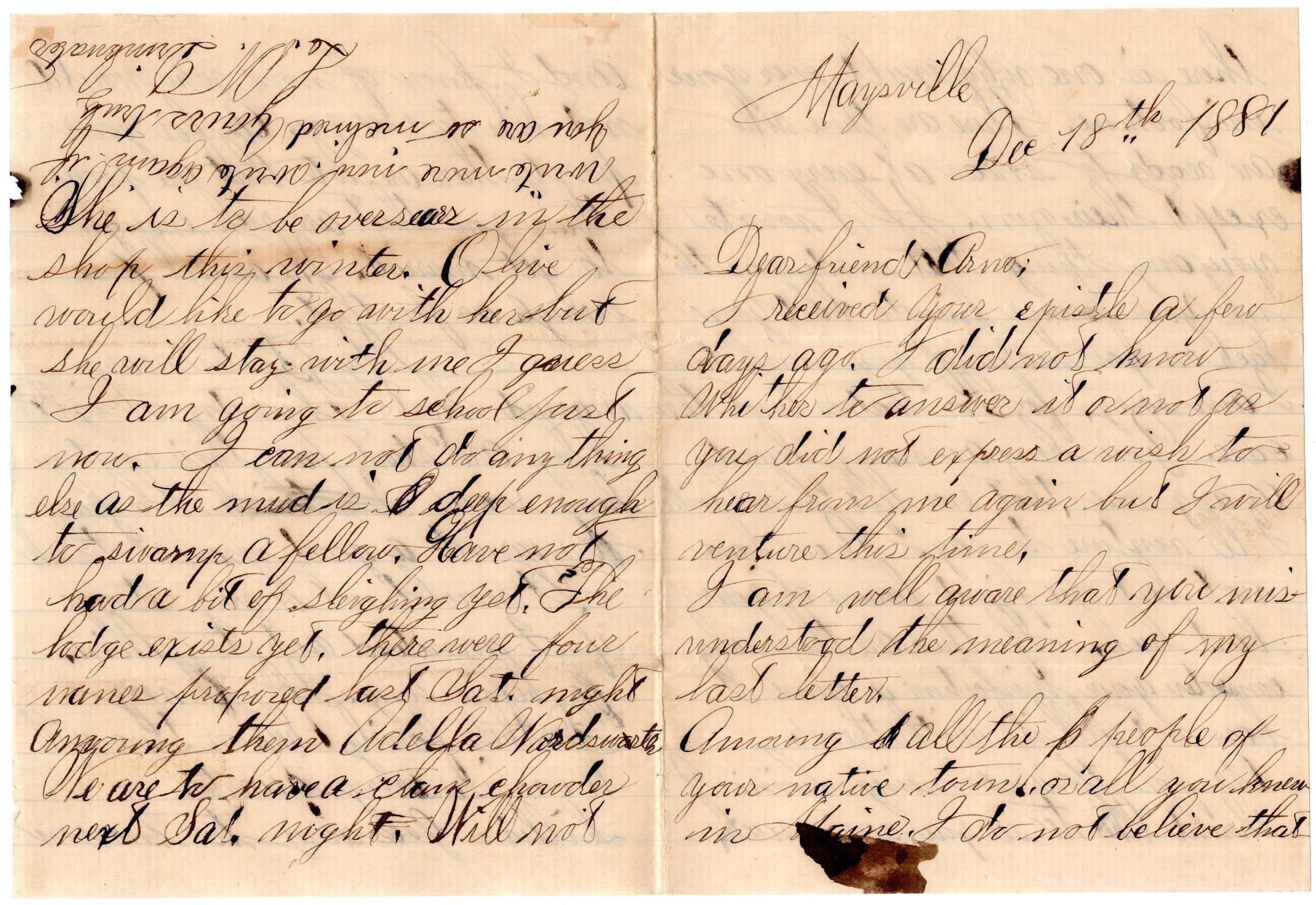 Knight Collection - 1881 Letter; Dated December 18th; Written by Llewellyn Drinkwater to Arno Knight; Arno is working in Colorado (Llewellyn is Olive's youngest brother)