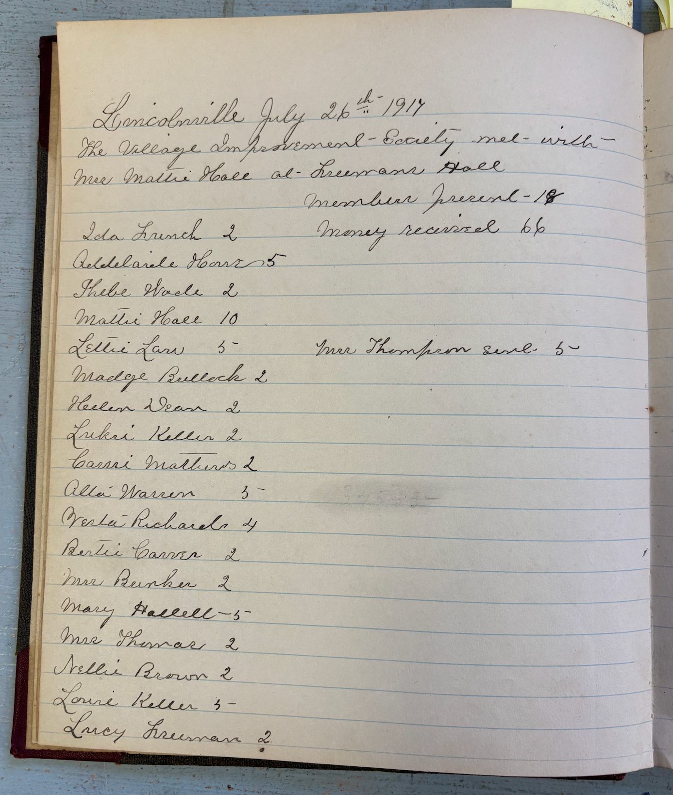 Hall, Mattie, Brawn, Shirley, French, Ida, Howe, Adelaide, Dean, Helen, Hurd, Helen, Wade, Phebe, Brown, Nellie, Brown, Hattie, Monroe, Adelaide, Duncan, Amanda, Keller, Eunice, Law, Lettie, Drinkwater, Angie, Freeman, Lucy, Coombs, Harriet, Brown, Helen, Keller, Louie, Carver, Bertie, Warren, Alta, Richards, Vesta (McKinney), Pitcher, Alice, Bullock, Madge, Mathews, Carrie, Wheeler, Clara, Hallett, Mary, Parker, Hazel O., Young, Winifred (see French), Woodward, Mary, Carver, Alberta, Thomas, Lydia, Bragg, Helen, Andrews, Lillian, Warren, Nora, McLeod, Florence, Munroe, GracePerson or Organization