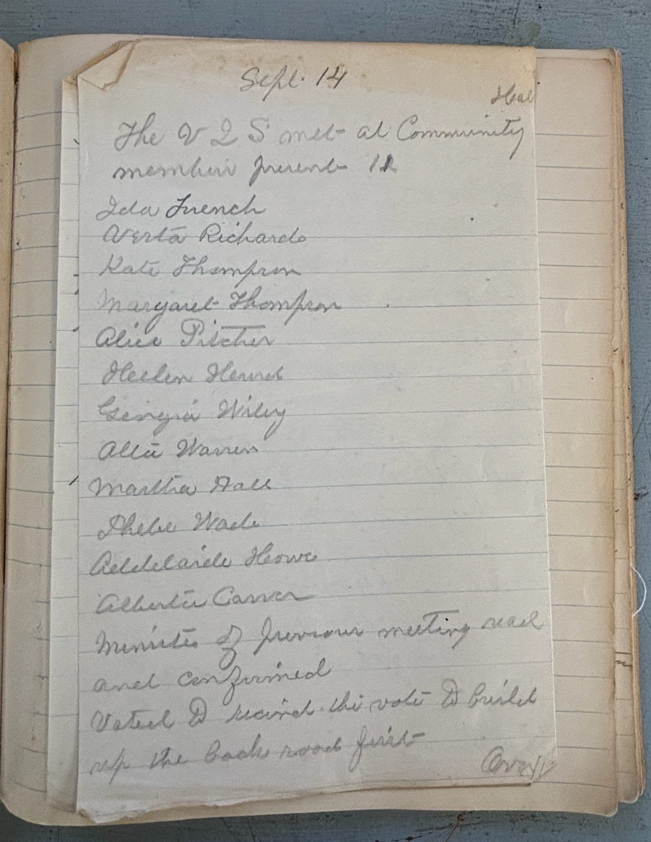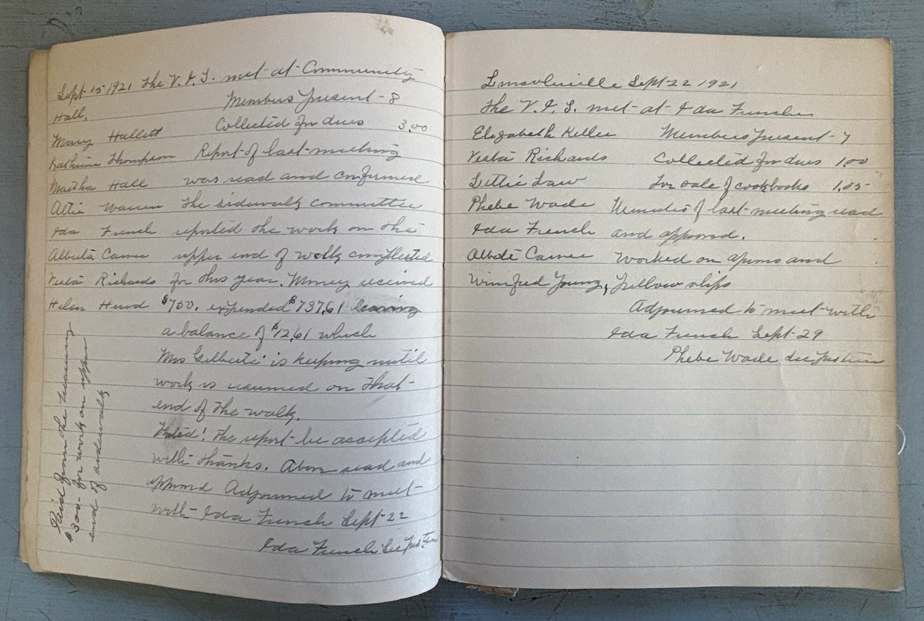 Village Improvement Society records - 1921 - 1922. Donated by Shirley Brawn.