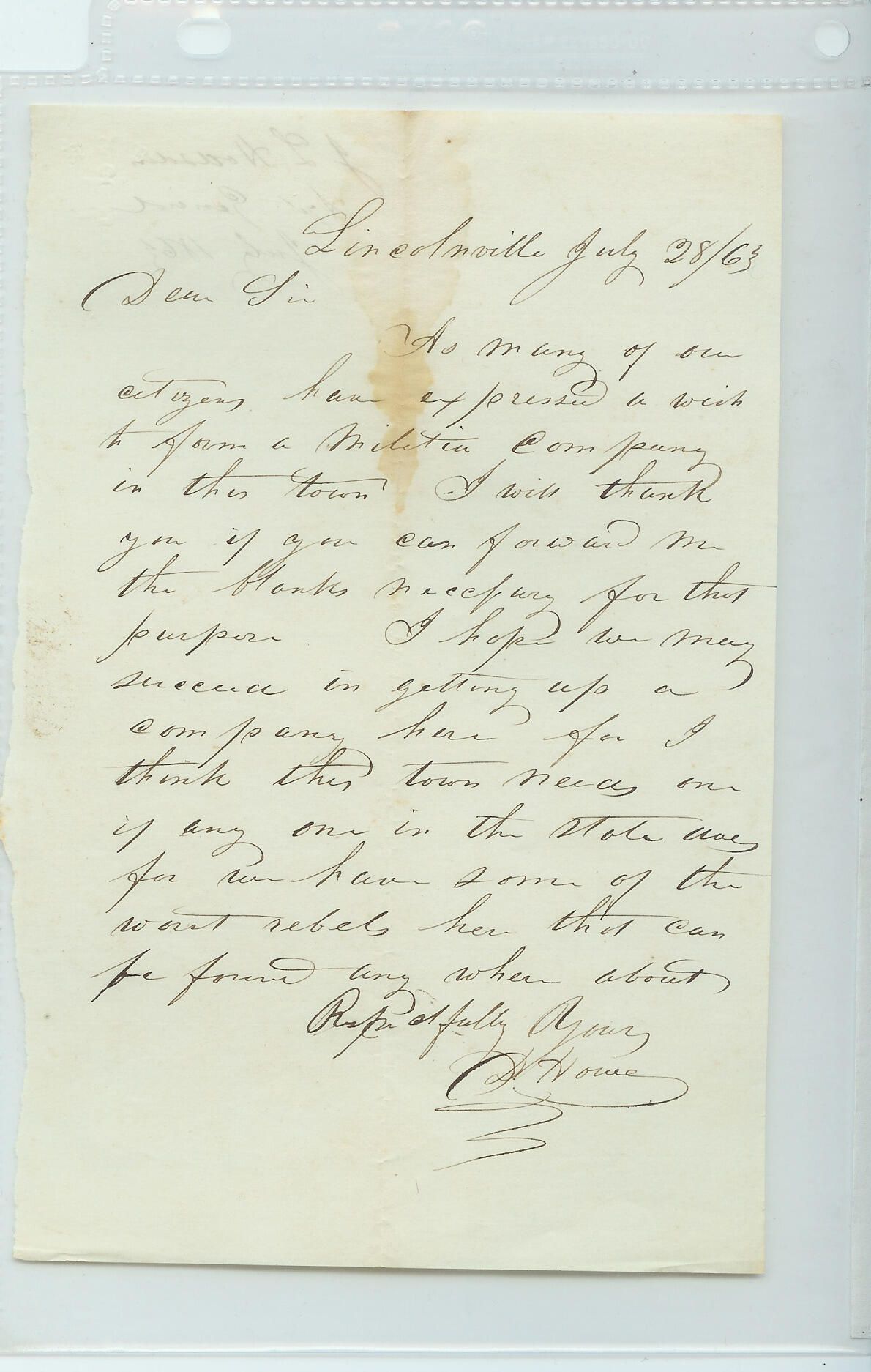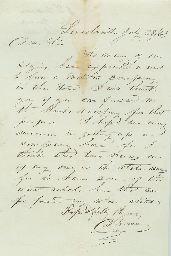 Letter written by David Howe regarding setting up a militia for the town of Lincolnville.