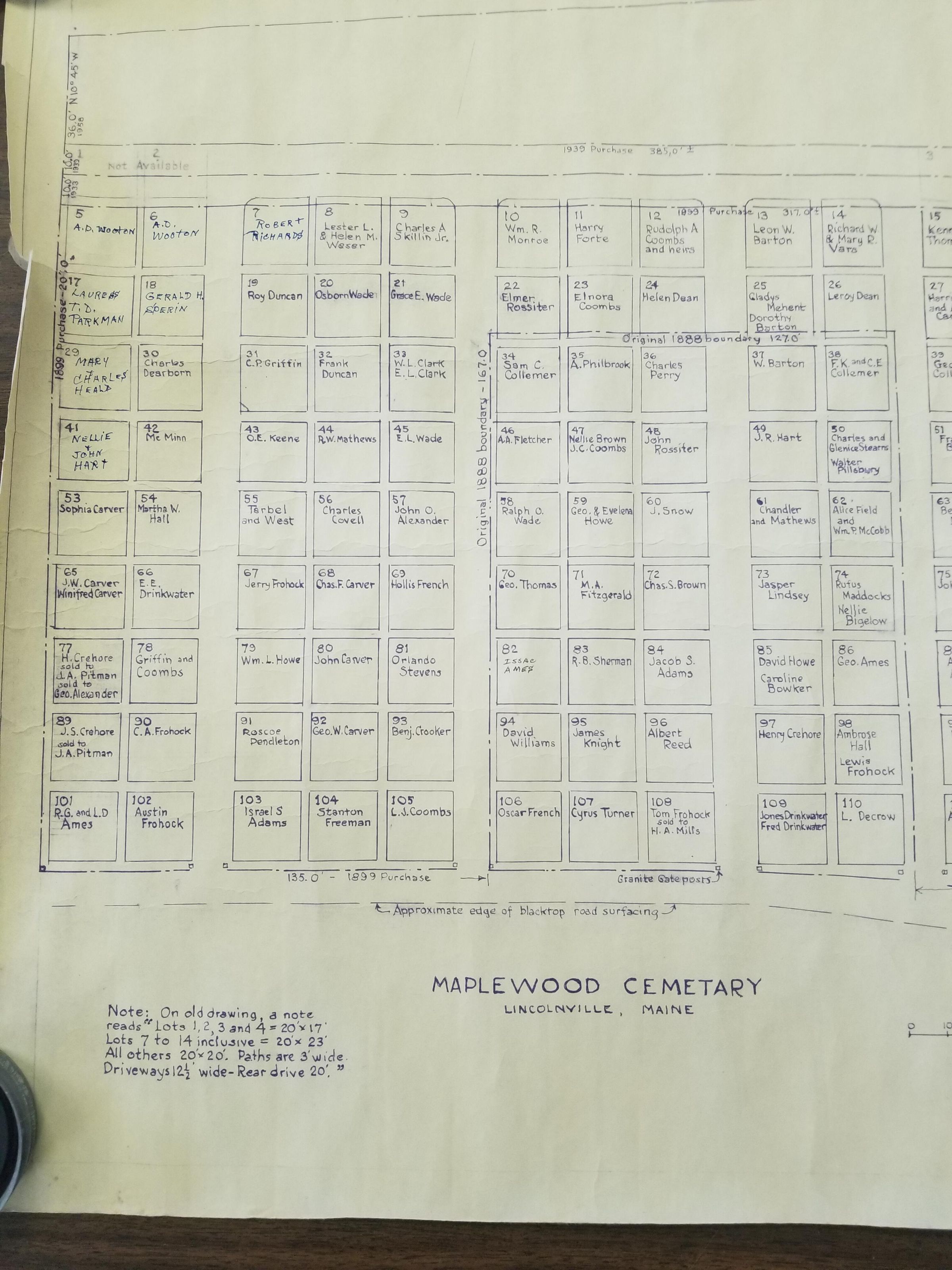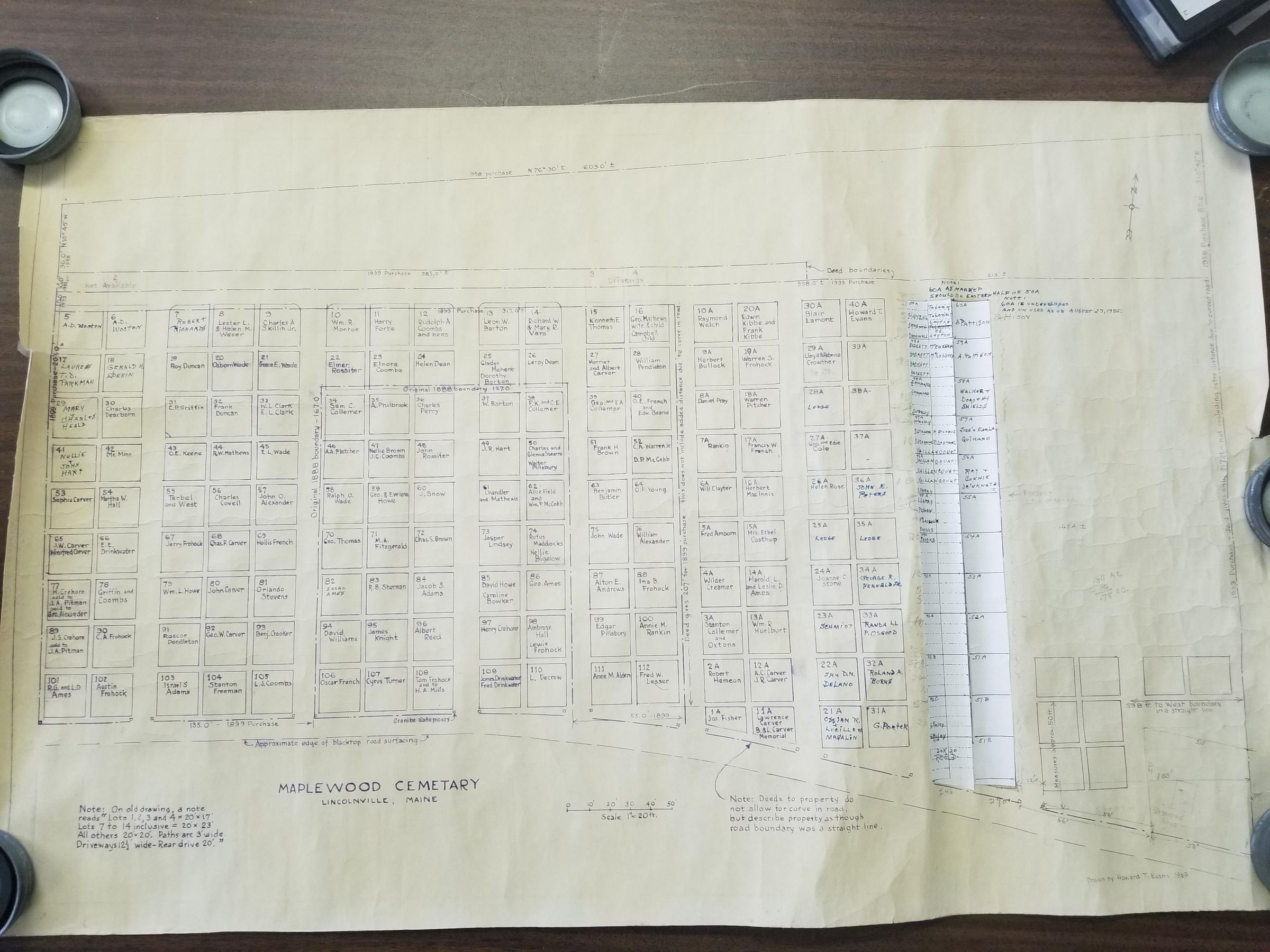 Maps of Maplewood Cemetery including one drawn in 1969; Updated in 1985