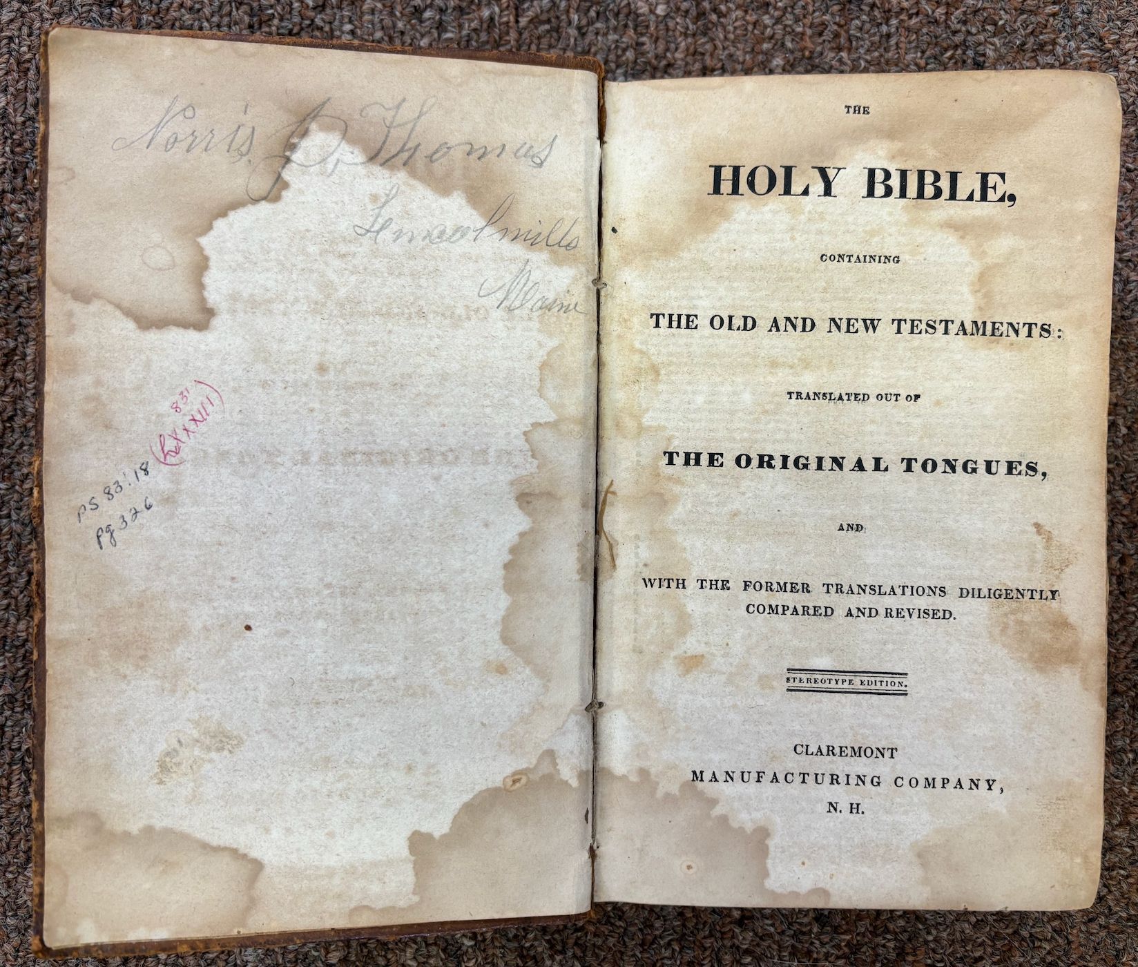 Bible belonging to Norris J. Thomas