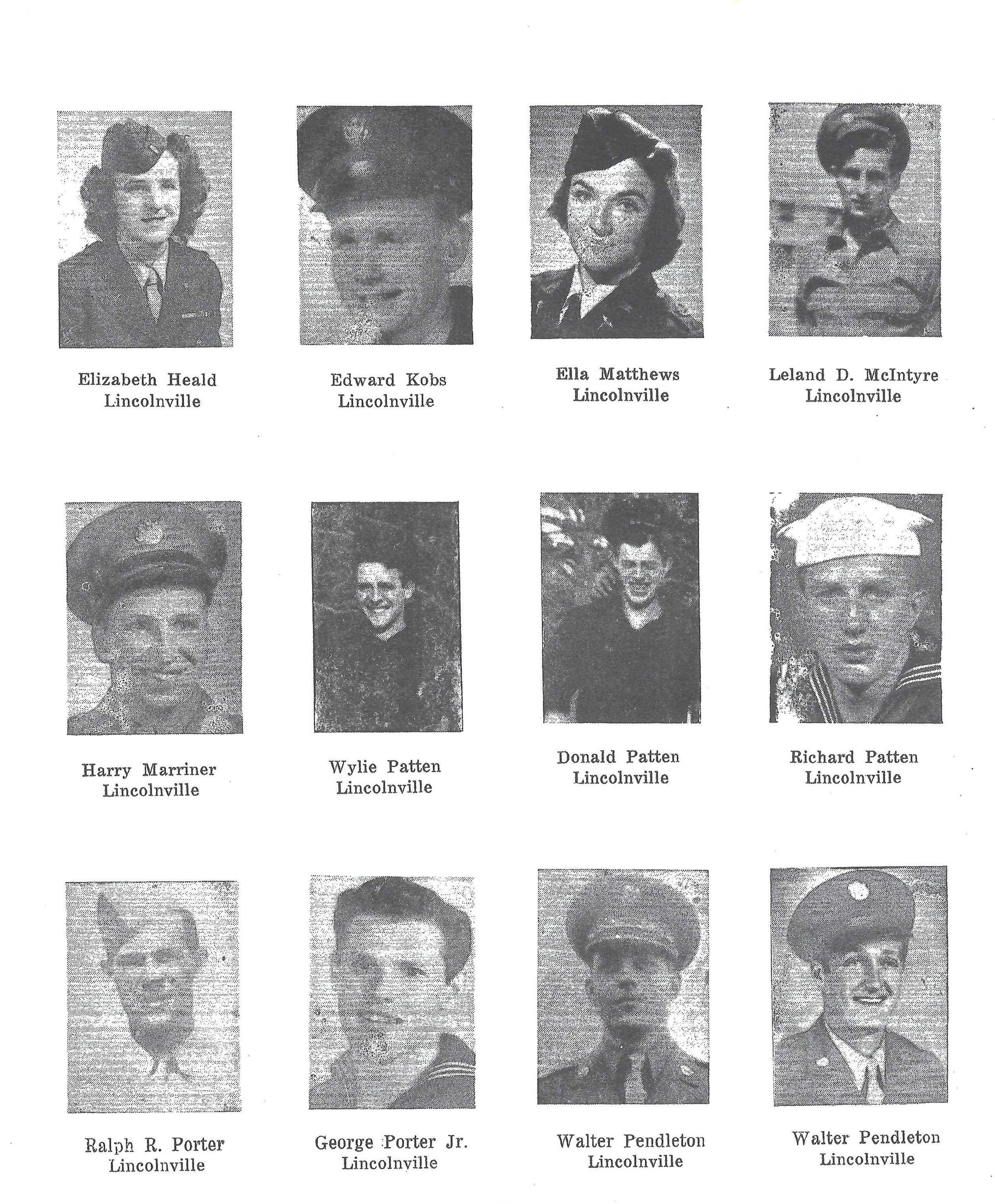 Allen, Edgar, Basford, Everett, Connors, Aubrey, Carver, James, Callahan, Richard, Collemer, Clarence, Frohock, Douglas, Gray, Norman, Hall, Albert, Hall, Clarence, Hardy, William H., Heald, Elizabeth, Kobs, Edward, Mathews, Ella, McIntyre, Leland D., Marriner, Harry, Patten, Wylie, Patten, Donald, Patten, Richard, Porter, Ralph R., Porter, George Jr., Pendleton, Walter, Philbrook, Bernard, Pottle, Howard G., Nichols, David A., Rankin, Malcolm, Reed, Alton, Reed, Raymond L., Smith, Dorothy, Thomas, Howard, Thurlow, Maynard, Weed, Walter E.