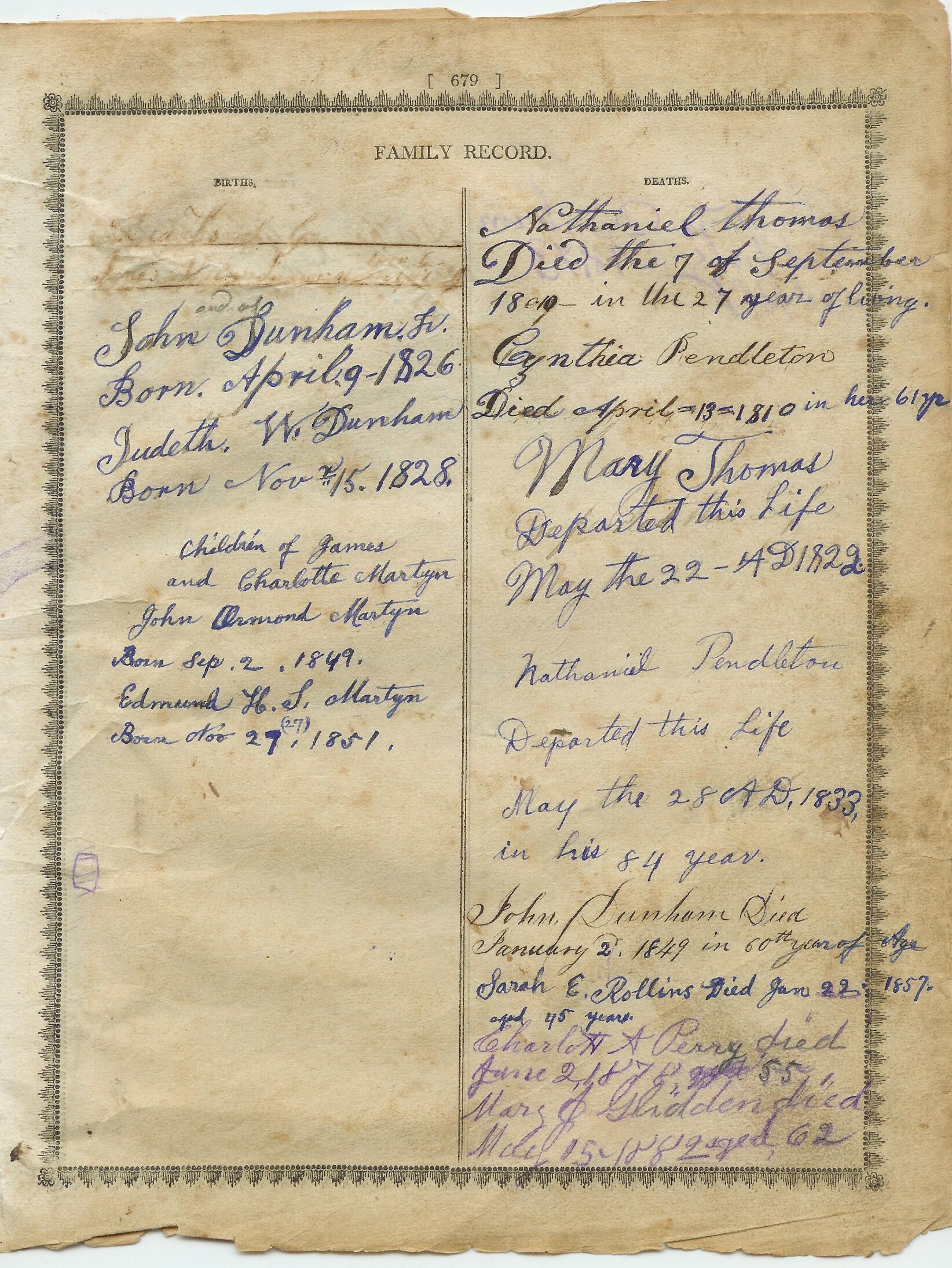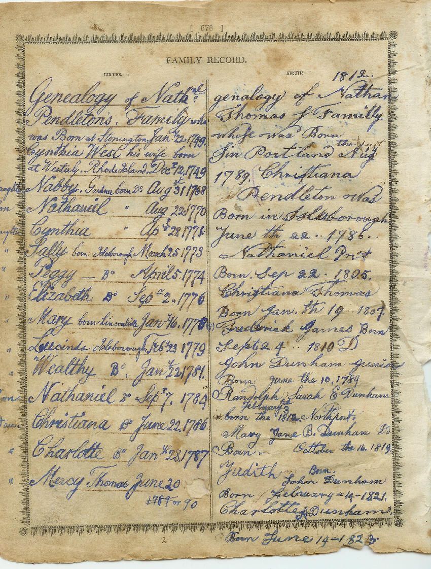 Vital records taken from family Bible. Pendleton and Thomas families.