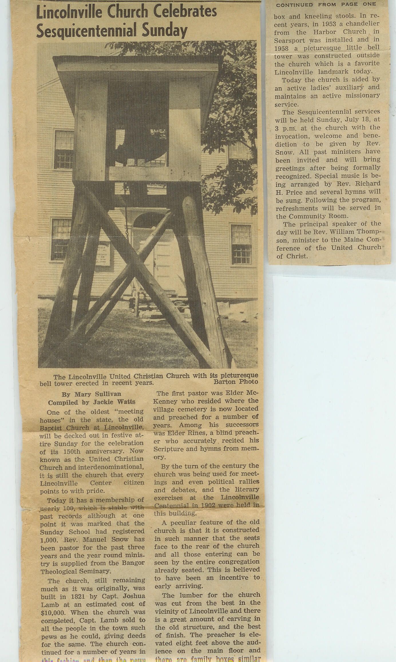 Lincolnville Church Celebrates Sesquicentennial SundayEntry/Object ID