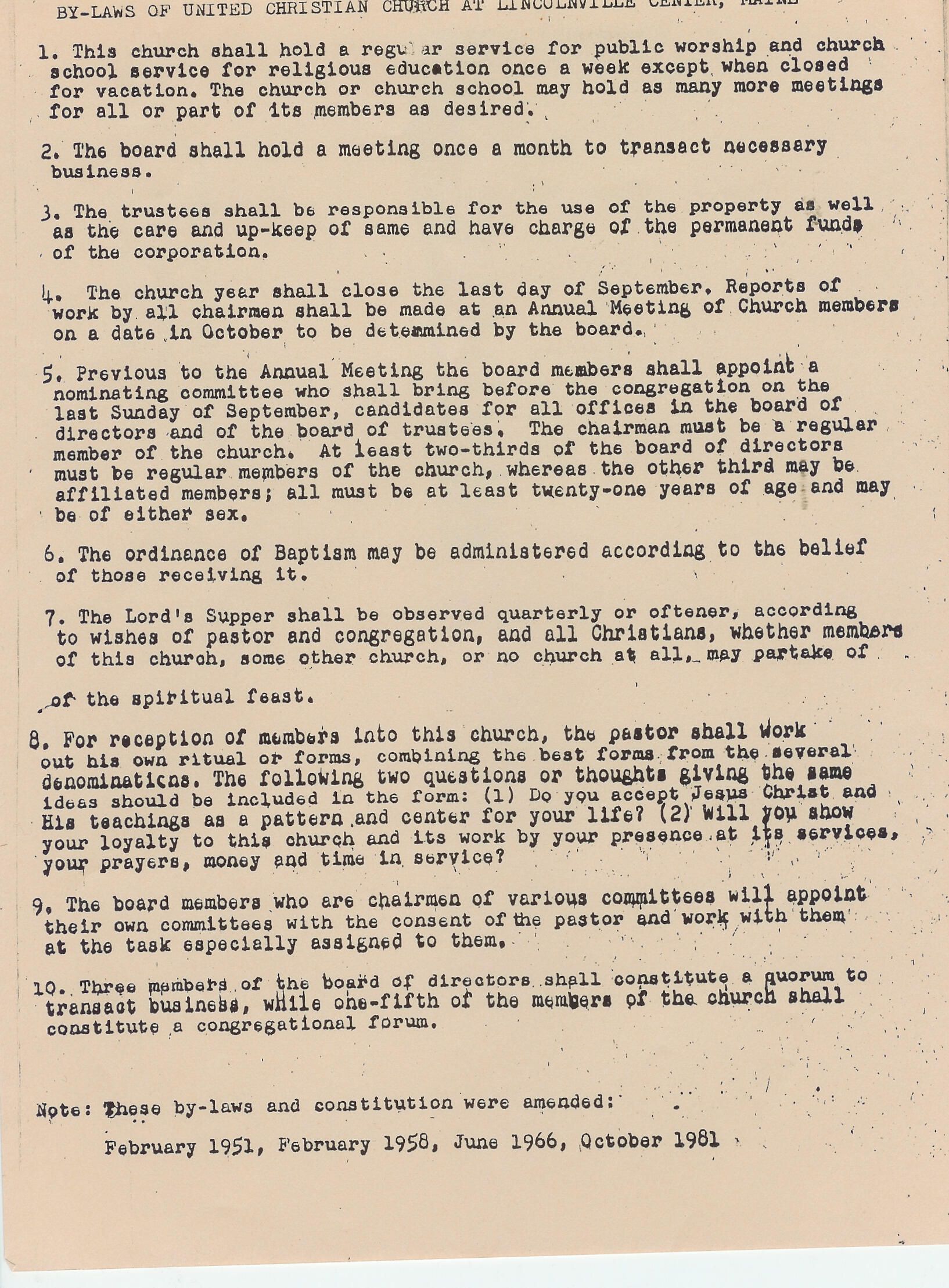 By-laws of United Christian Church at Lincolnville Center, MaineEntry/Object ID