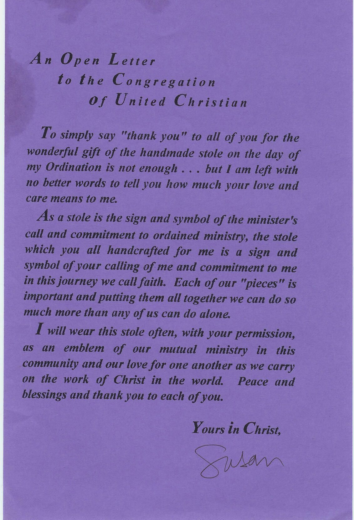 file of papers pertaining to Rev. Susan Stonestreet