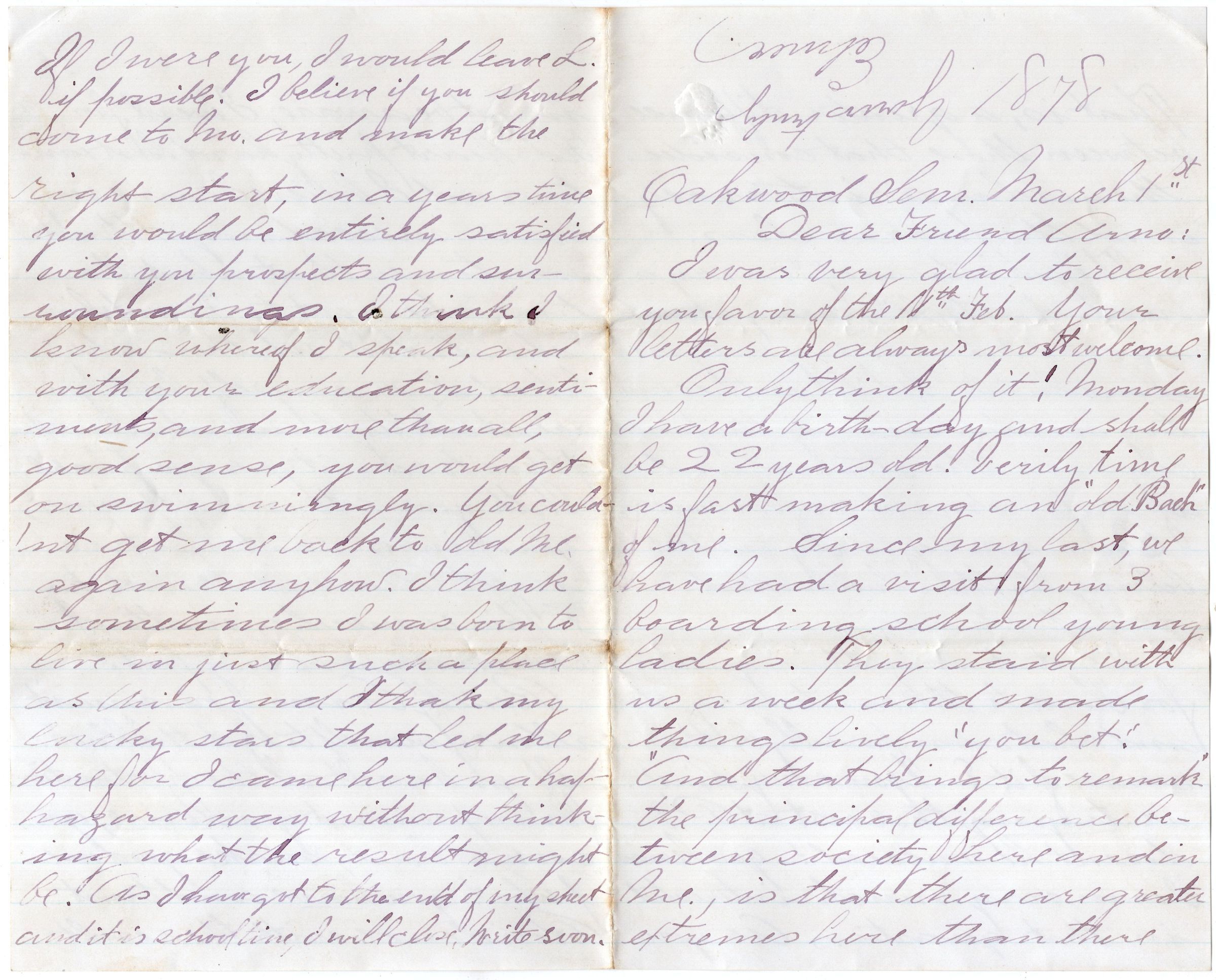 Knight Collection 1878 Letter; Dated March 1st; Written by Elmer Gould to Arno KnightRelationships