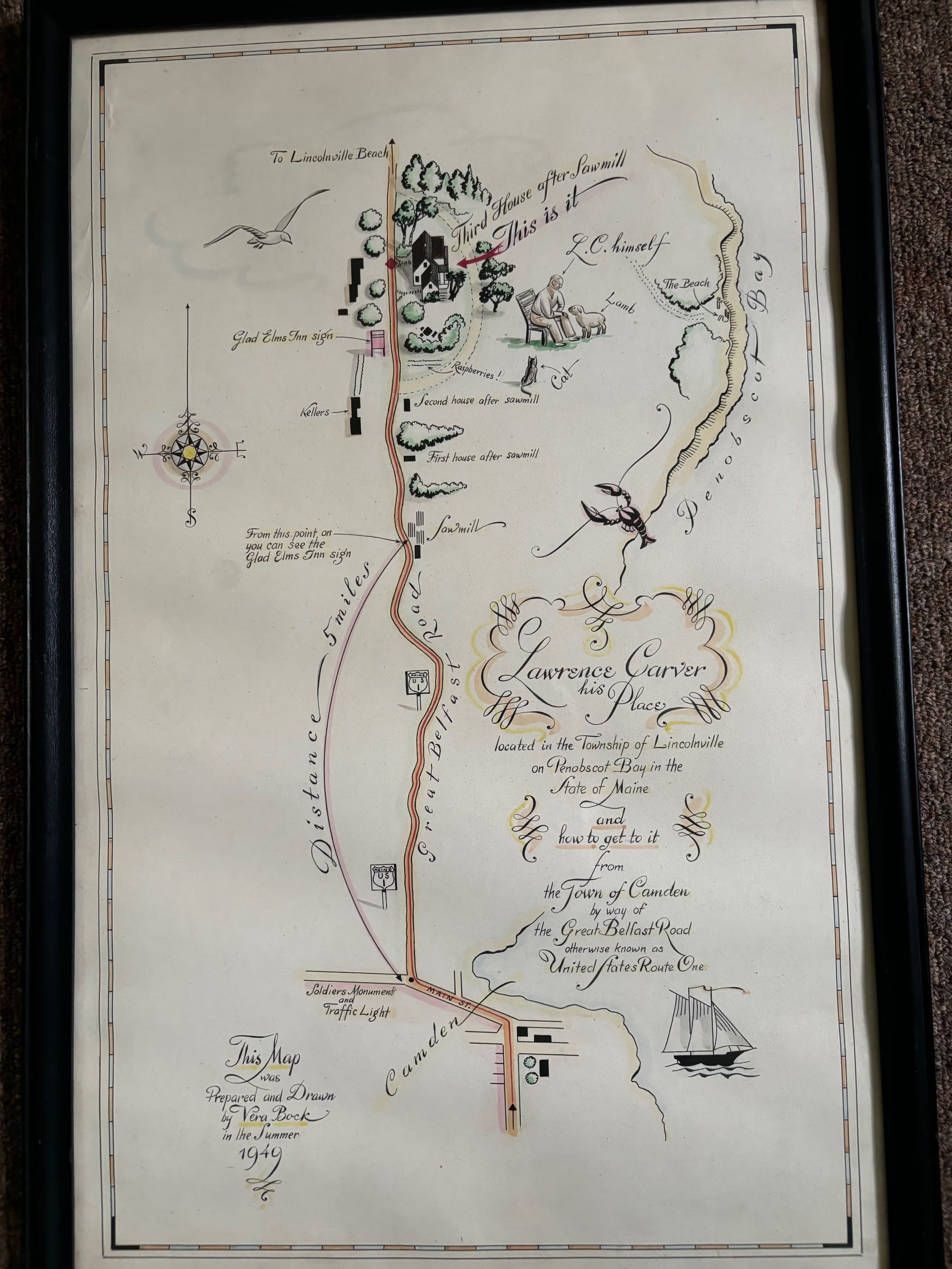 Framed map; hand-drawn showing the way from Camden to Lawrence Carver's placeRelationships