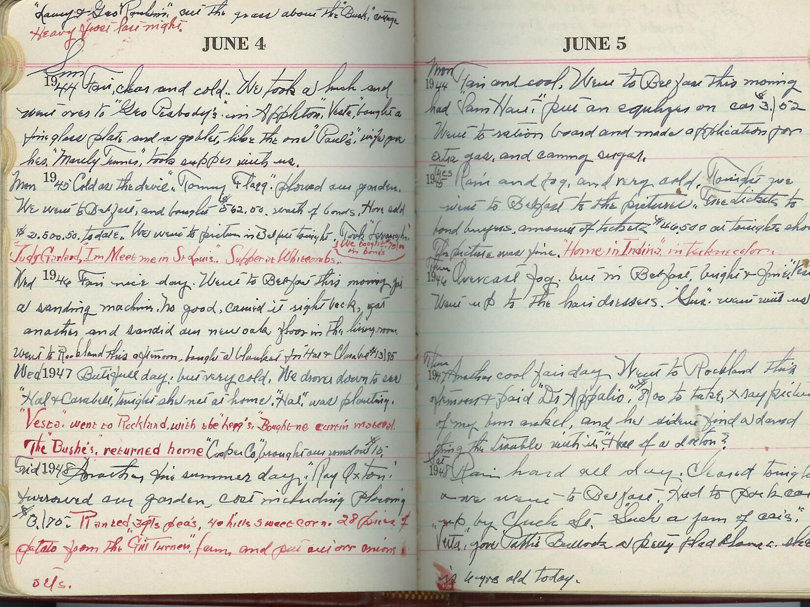five year diary covering 1944-1948