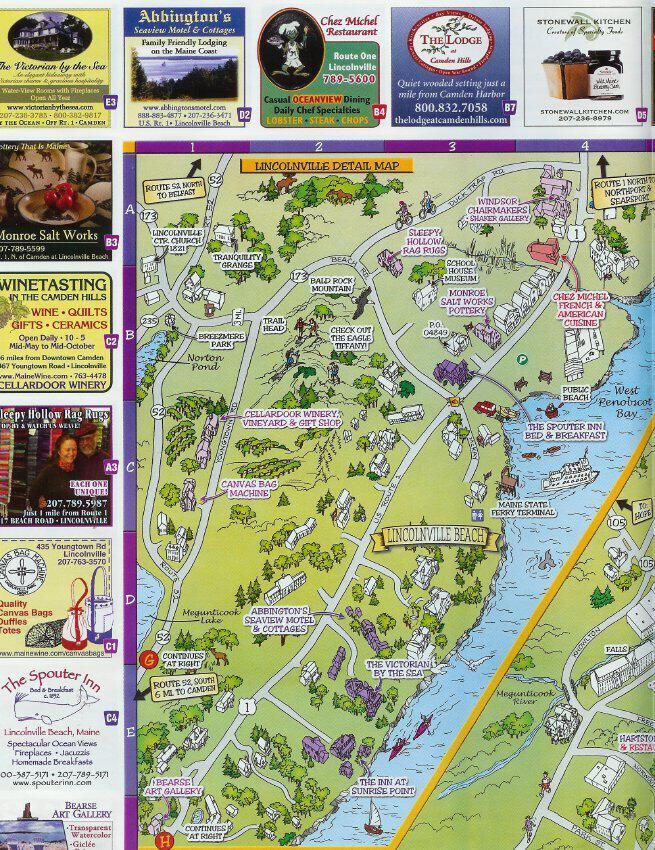 2-sided, 4-color glossy map of Rockland, Camden, Rockport, St. George and Lincolnville