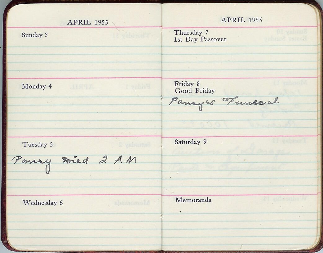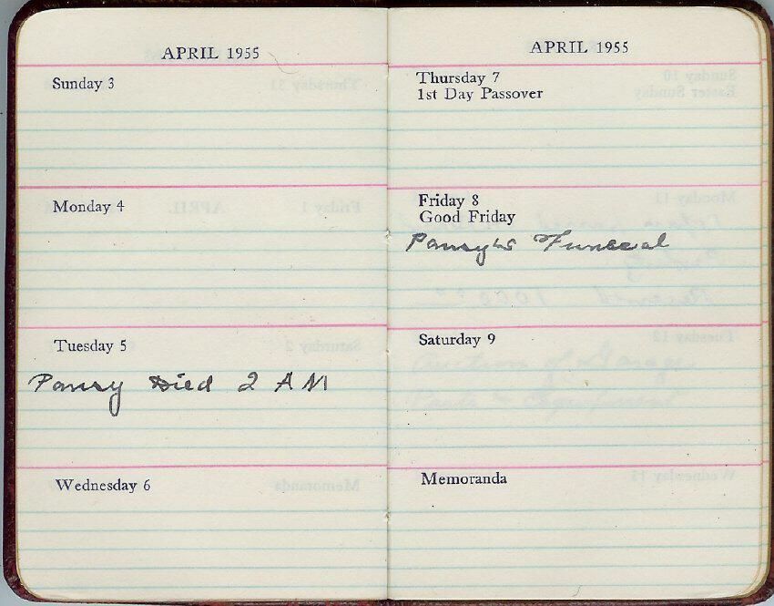 1955 diary kept by George E. Nichols during the time of wife Pansy's final illness and death.