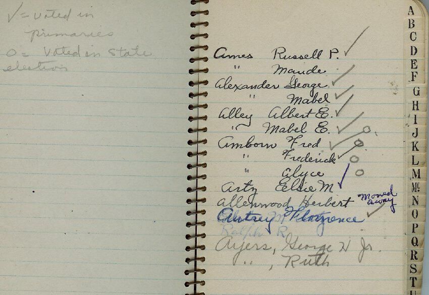 Undated listing of Lincolnville voters who voted in primaries or state elections.