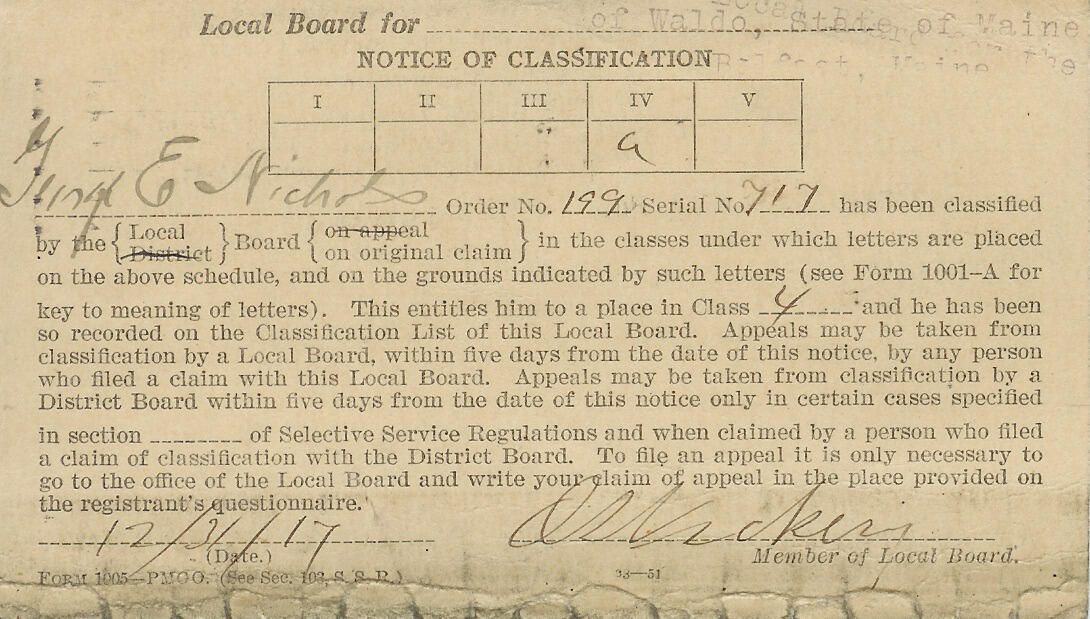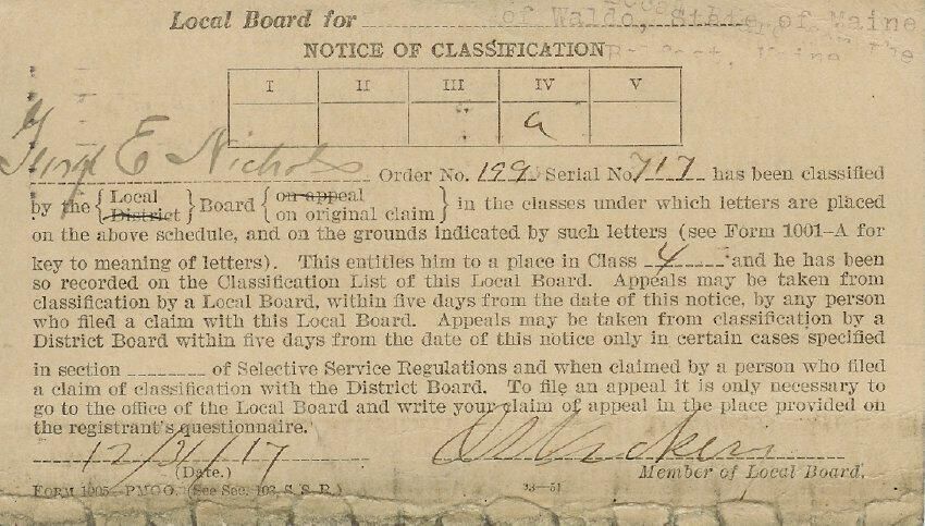 War Department classification notice sent to George E. Nichols.