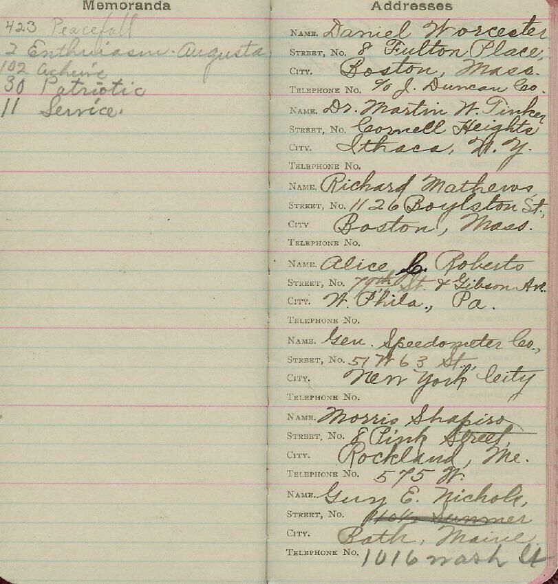 Address book kept by George E. Nichols. Also includes some expense records.