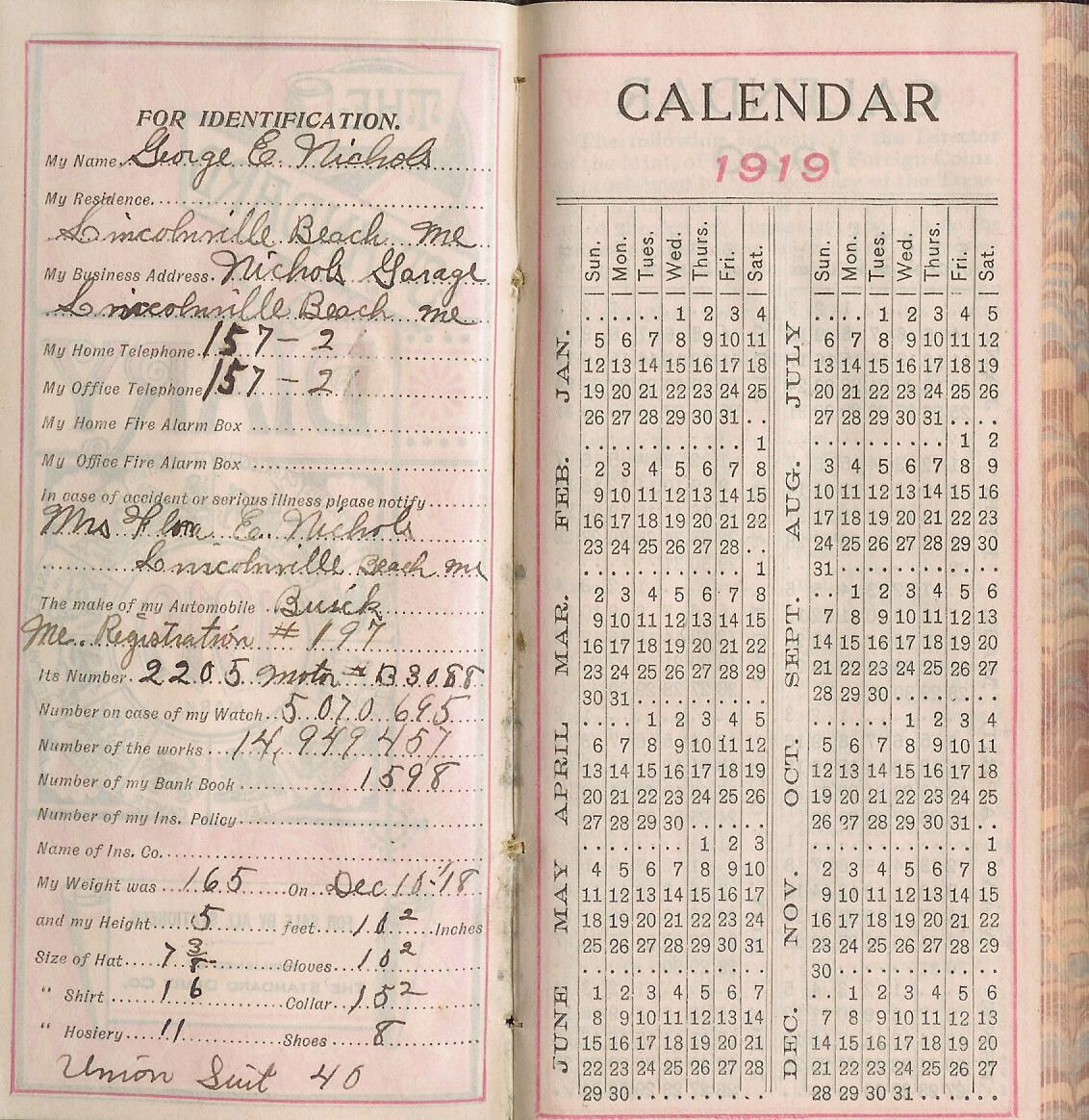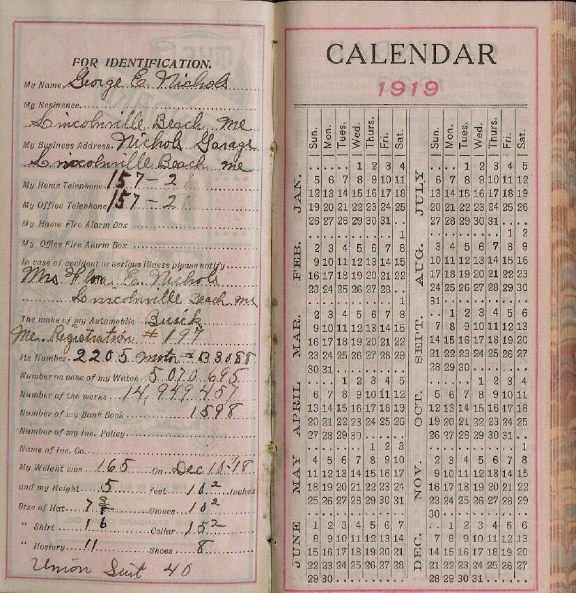 Diary kept by George E. Nichols in 1919. Very few entries.