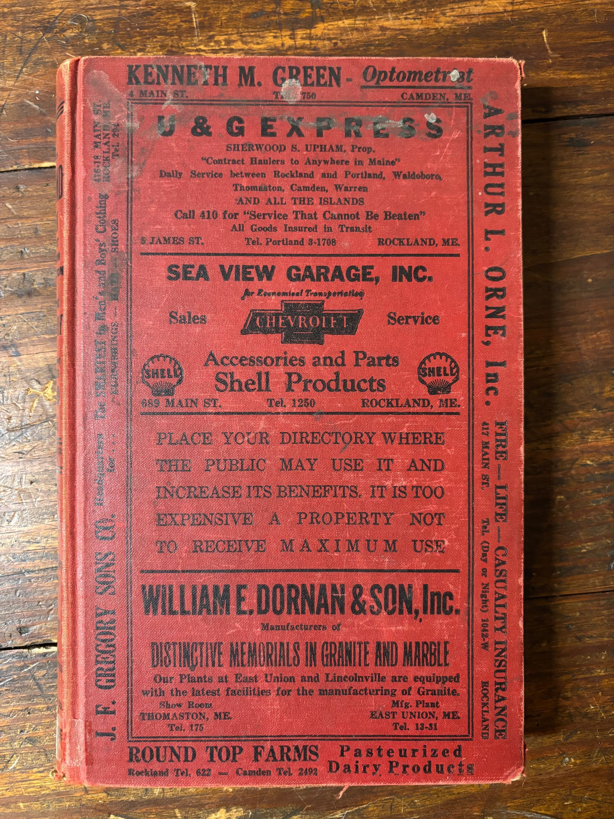 1939 directory for towns of Rockland, Rockport, Camden, Union, Warren and Thomaston.