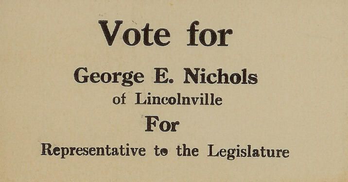 George E. Nichols political card - Vote for George E. Nichols for Representative to the Legislature.