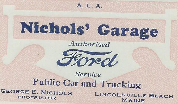 Card advertising Nichol's Garage, Lincolnville Beach, Maine.