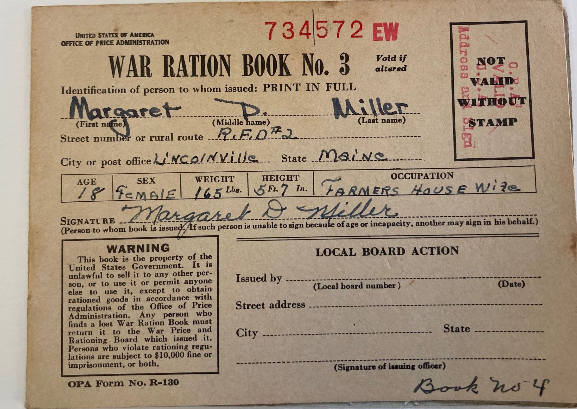 Paper holder for ration books during WWII belonging to Raymond A. Miller