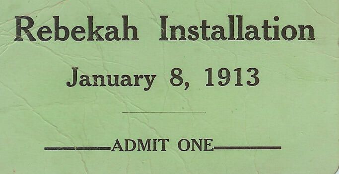 Admission One Ticket to Rebekah Installation given to Flora Nichols.