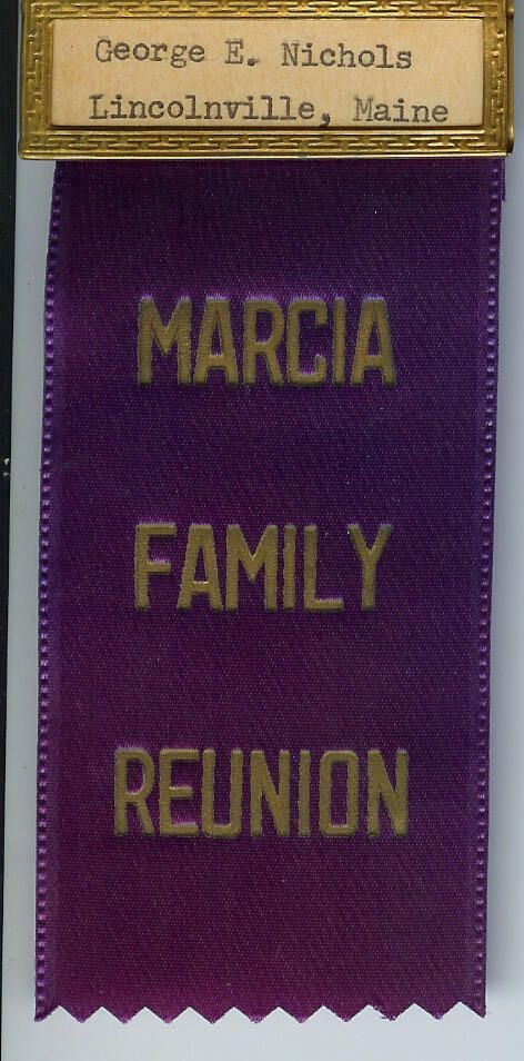 Name tag issued to George E. Nichols at Marcia Family Reunion.