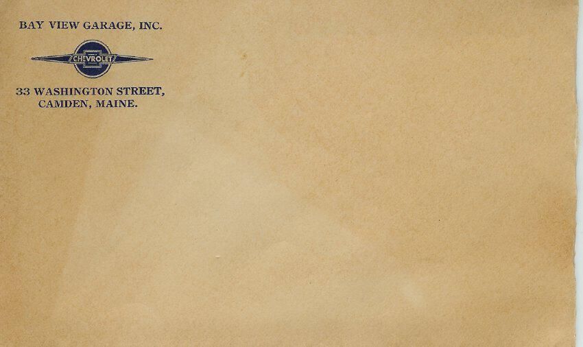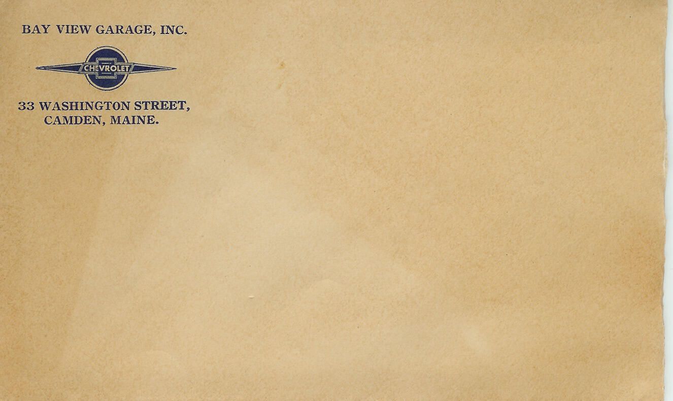 Blank envelope from Bay View Garage, 33 Washington Street, Camden, Maine owned by George E. Nichols.